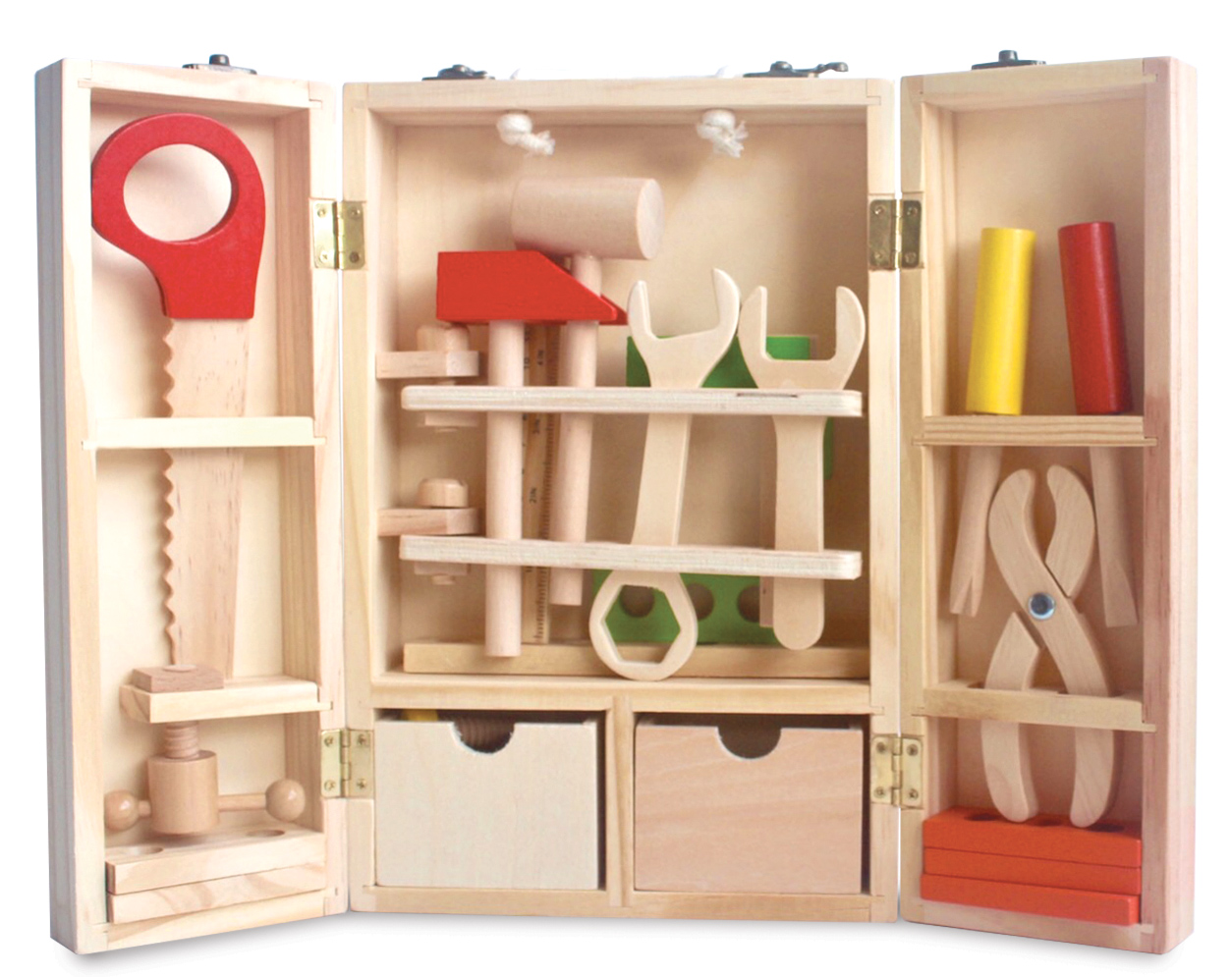 Drvena kutija s alatima za samostalne aktivnosti. Ima ladice na izvlačenje i ručke za pojedine elemente zahvaljujući kojima djeca uče držati stvari u redu i vraćati predmete na svoje mjesto. Korišteni zatvarači olakšavaju skladištenje i sprječavaju ispadanje elemenata tijekom transporta dok se prenose ili preokreću.
