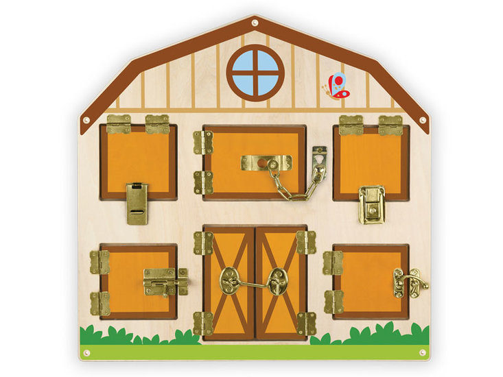 Manipulativna ploča u obliku pločica s prozorima koji se zaključavaju. Na drvenoj ploči nalazi se 6 pari vrata, a iza njih su skrivene slike životinja i predmeta. Igračka zahtijeva od djeteta da pronađe način otvaranja različitih vrsta brava. Panel se može montirati na zid.