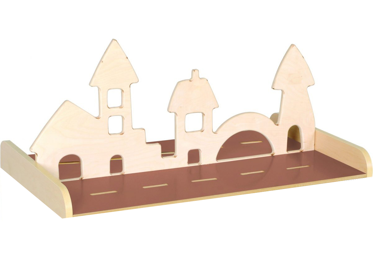 Dodatak za policu u koju se može umetnuti mali grad s cestom. Odlično mjesto za zabavu na kojem se sve igračke mogu koristiti. Izrađen od oplemenjenog iverala, MDF-a i brezinog masiva.