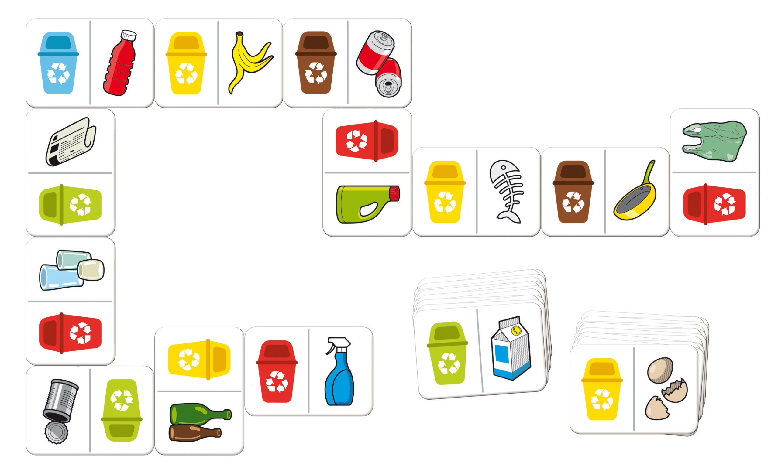 Igra koja se temelji na klasičnom pravilu domina. Prikladnu kantu treba kombinirati s vrstom odabranog otpada. Igra vježba percepciju i poboljšava koncentraciju. No, najviše od svega, zahvaljujući njemu, djeca uče o raznim skupinama otpada s kojima se susreću u svakodnevnom životu, obogaćujući rječnik, dajući im imena i uče pravila odabira otpada.