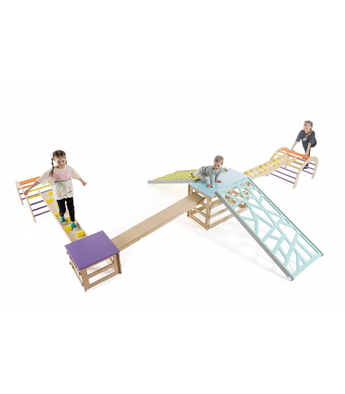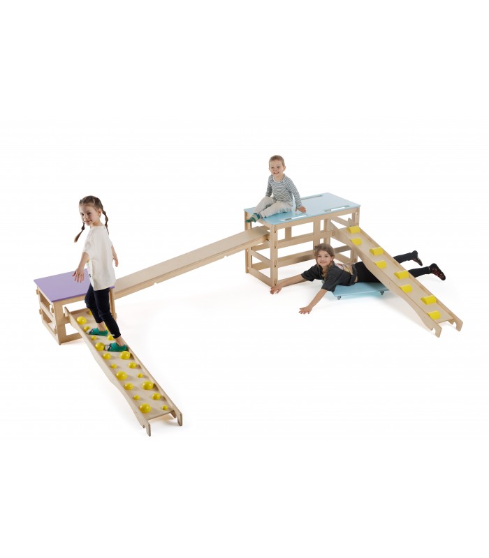 Drvena rampa s polukrugovima potiče razvoj motoričkih sposobnosti djece s naglaskom na ravnotežu pokreta. Penjanjem po valjcima potiče se i razvoj koncentracije djece. Element je moguće postaviti na različite kosine ili druge sportske elemente kako bi kretanje po rampi postalo još izazovnije.