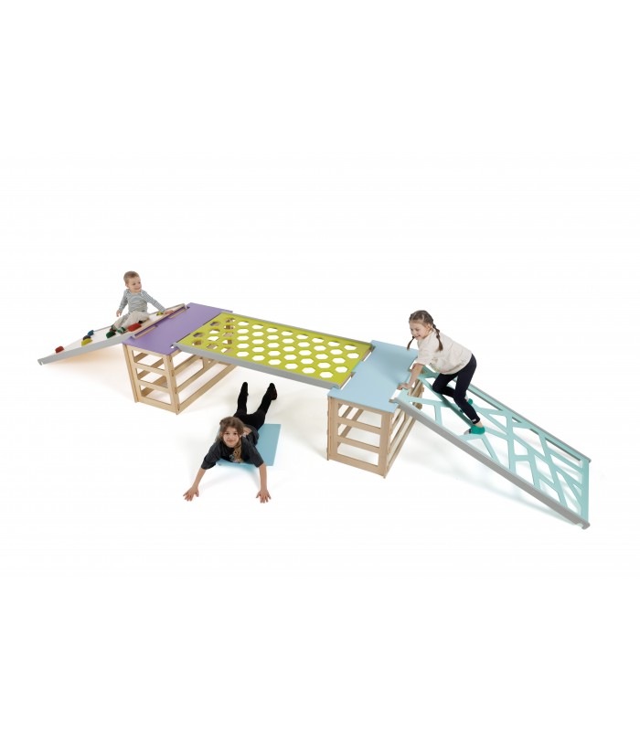 Drvena rampa s valjcima potiče razvoj motoričkih sposobnosti djece s naglaskom na ravnotežu pokreta. Penjanjem po valjcima potiče se i razvoj koncentracije djece. Element je moguće postaviti na različite kosine ili druge sportske elemente kako bi kretanje po rampi postalo još izazovnije.