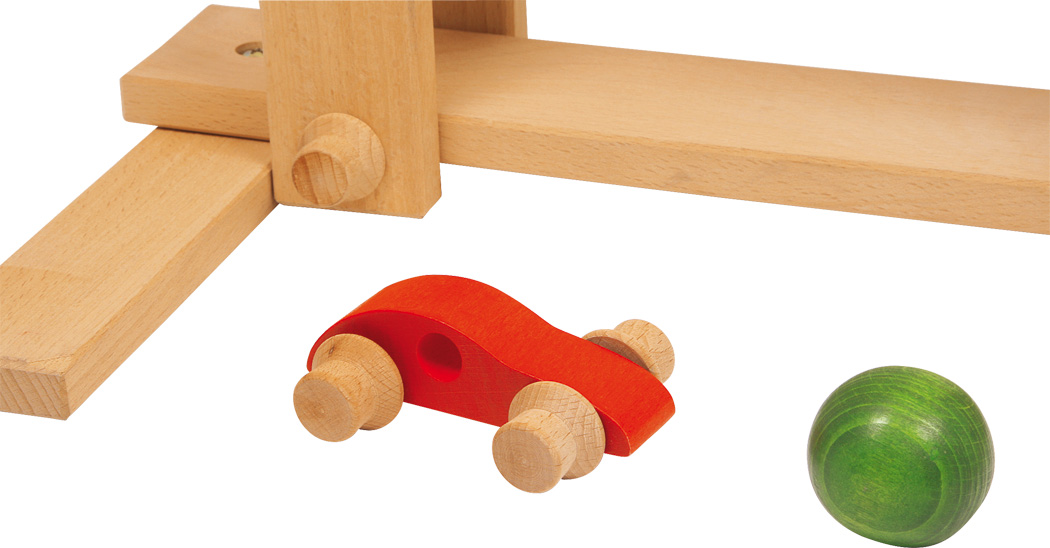 Bilo da se kotrljaju niz stazu jedan za drugim ili pojedinačno – kotrljajući elementi su užitak za vaše oči i uši. Brza montaža zajamčena je s navojnim dijelovima koji također olakšavaju transport na način koji štedi prostor. Navojne poprečne šipke na podnožju daju mu čvrst stojeći položaj.