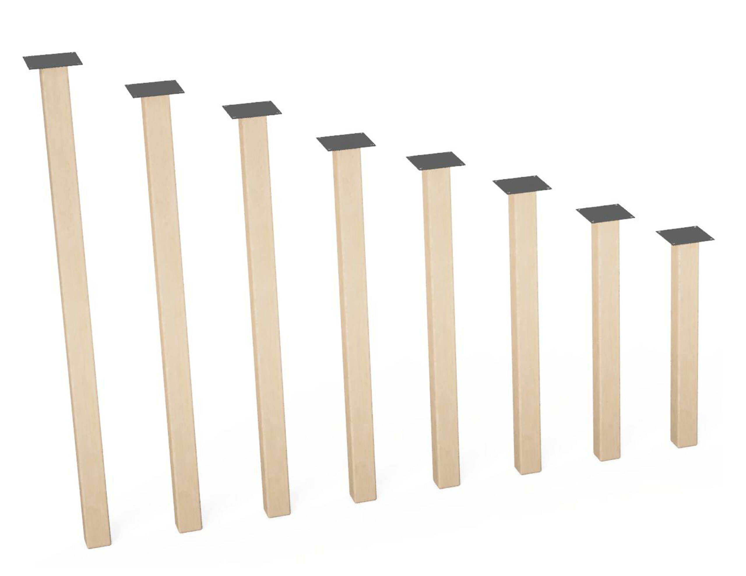 Četiri drvene noge s metalnom pločicom od nehrđajućeg čelika. Izrađene od bukovog masiva. Svaka je komponenta jedinstvenog izgleda zbog prirodnog materijala drva. Patentni sustav spajanja noge ispod stola osigurava jednostavnu montažu i rastavljanje. Nosivost same noge stola iznosi 300 kg.