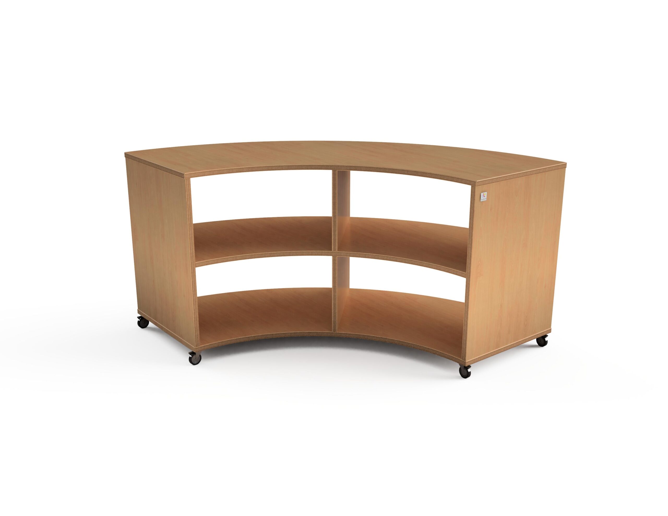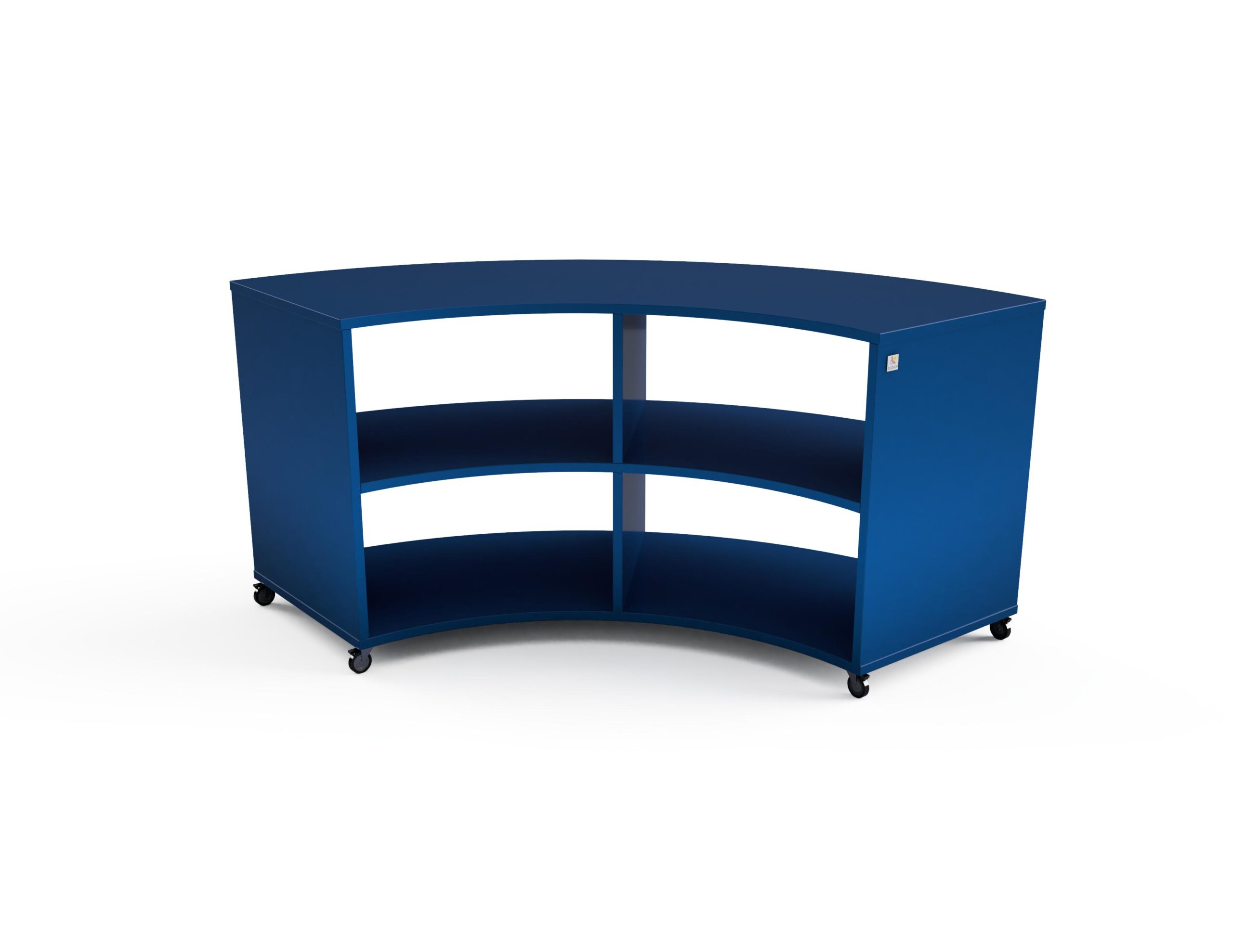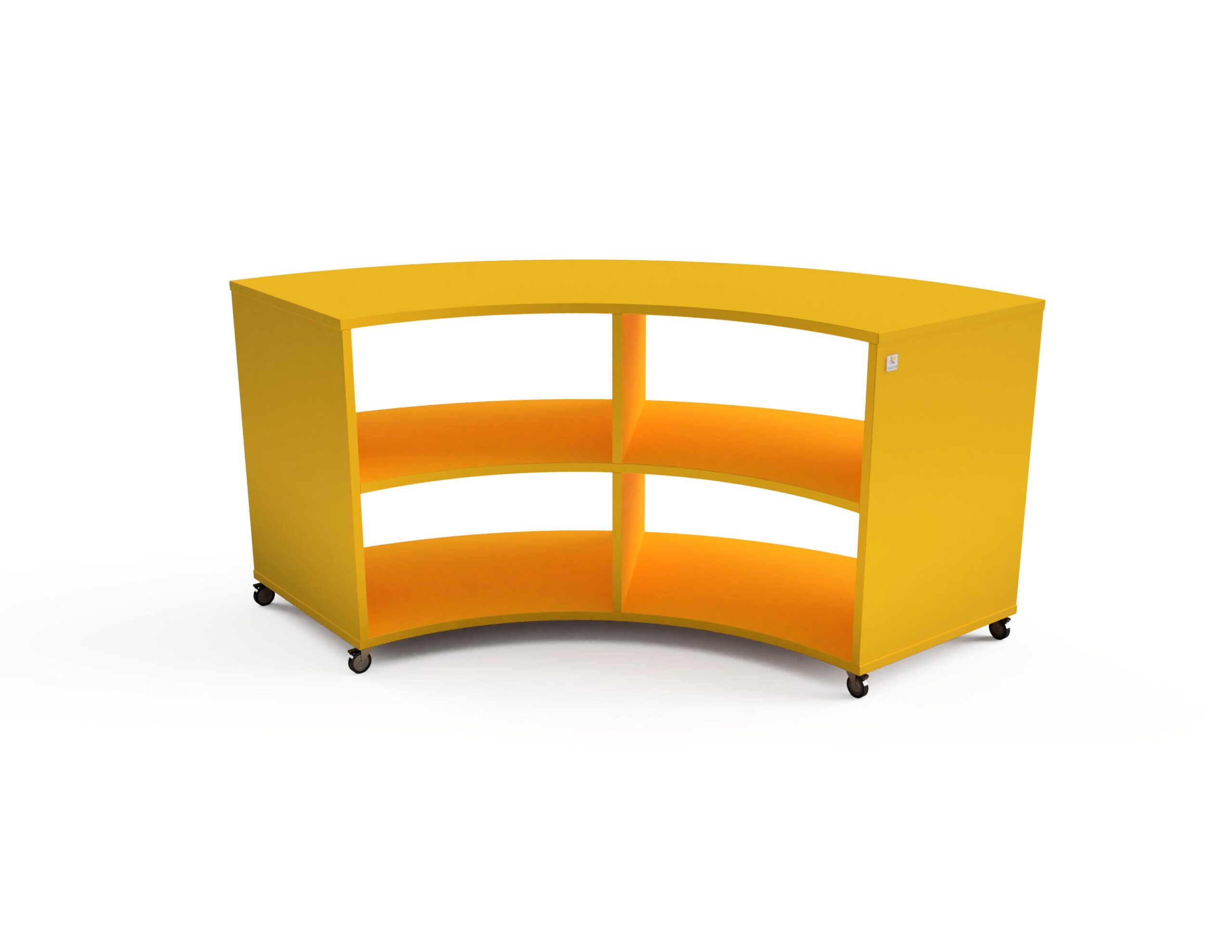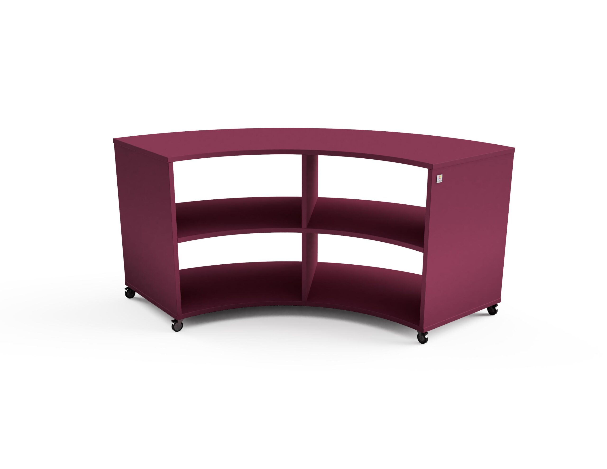 Element četvrtina kruga sastoji se od dvije police. Idealan za pregrađivanje prostora samostalno ili kao dio seta. Lijepo se kombinira s ostalom kolekcijom namještaja. Izrađen od materijala po izboru u debljini od 18 mm. Spajan je bez vidljivih spojeva. Ormarić s podnožjem na metalnim kotačičima.