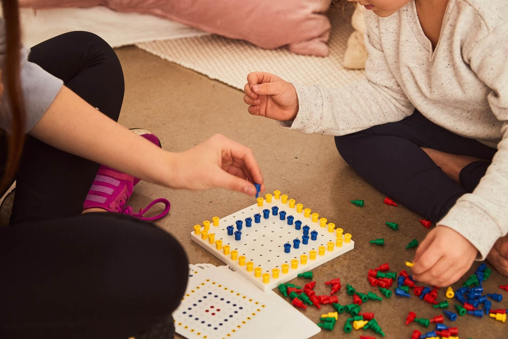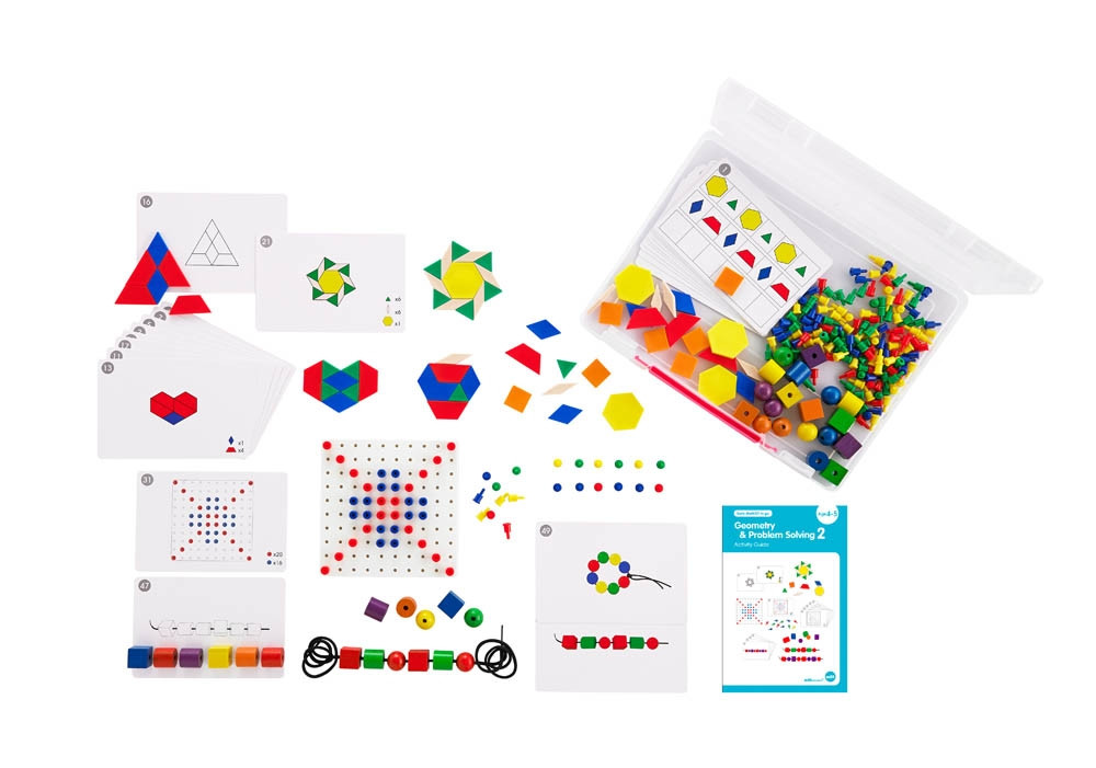 Potiče razvoj predmatematičkih vještina i logičkog razmišljanja djece na zabavan i edukativan način. Set uključuje 60 blokova s uzorkom, 200 nmalih klinova, 1 ploču za vezivanje, 25 dvostranih kartica a aktivnostima i vodič za aktivnosti u plastičnoj kutiji.