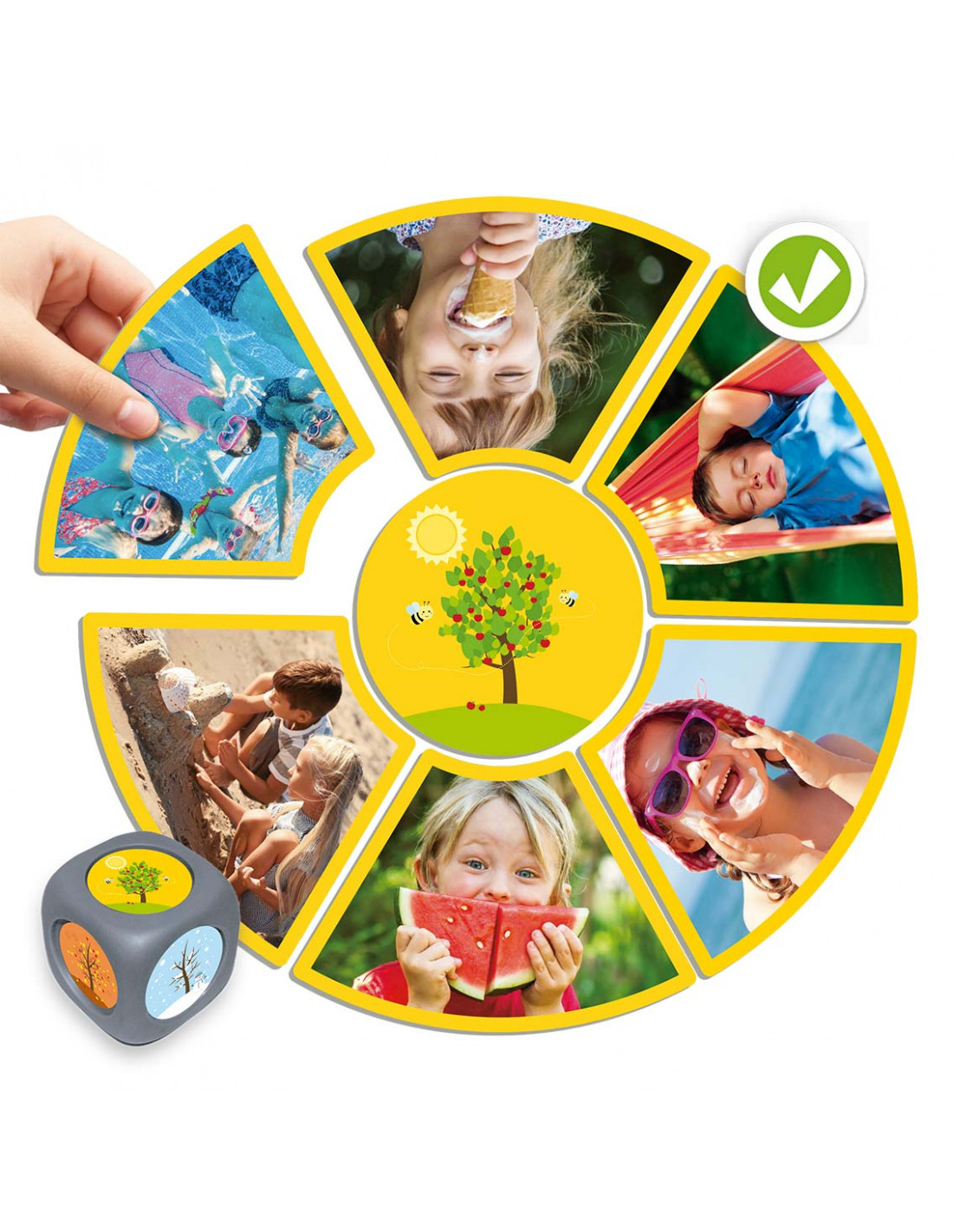 Originalna igra udruga za otkrivanje aktivnosti koje se provode u proljeće, ljeto, jesen i zimi. Prave slike pozivaju vas da iznova istražujete godišnja doba. Svako godišnje doba ima okvir različite boje što omogućuje lako povezivanje s kartama.