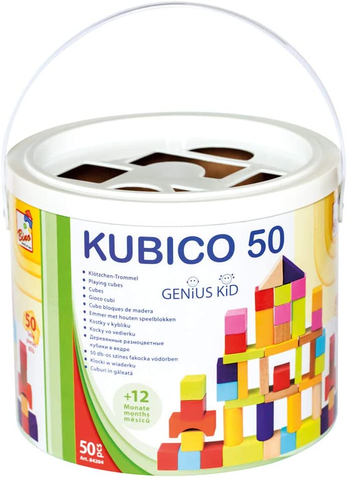 Popularne kocke, koje će zabaviti i najmanje, pogodne su za svakodnevno učenje raznih vještina. Kantica služi za spremanje kockica i opremljena je ručkom za lako nošenje. Set je dizajniran bez oštrih rubova i prikladan je za malu djecu. Izrađen je od visokokvalitetnog drva. Set sadrži 50 dijelova. Igračka potiče razvoj logičkog razmišljanja i fine motorike.