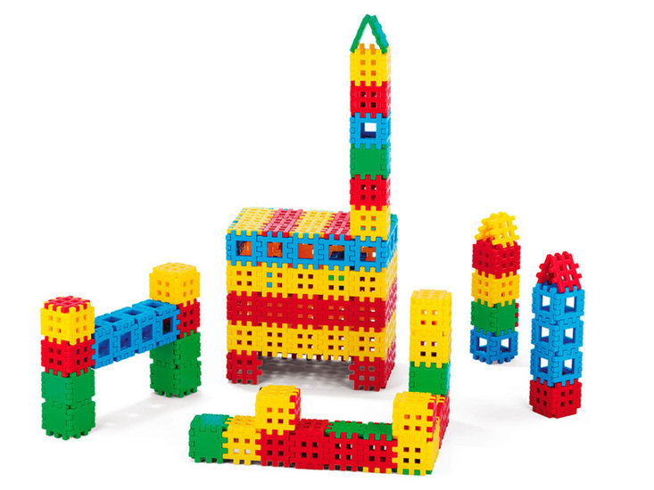 Veliki i lagani blokovi za građevinske igre. Elementi se međusobno lako povezuju u ravnini i prostoru. Potiče se razvoj fine motorike, kreativnog razmišljanja i logičkog zaključivanja djece.