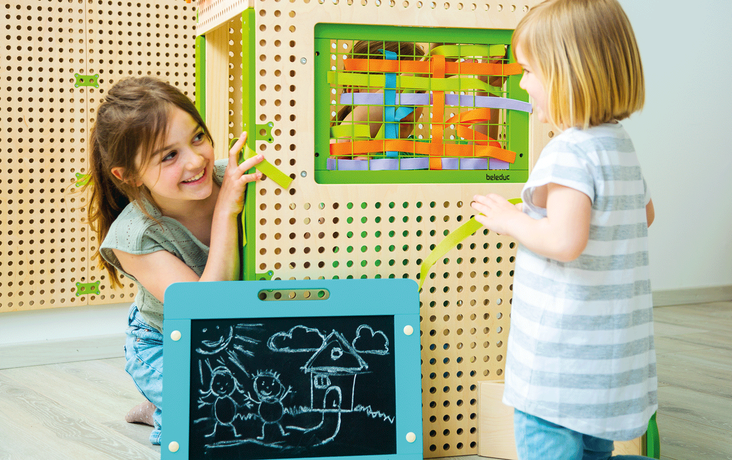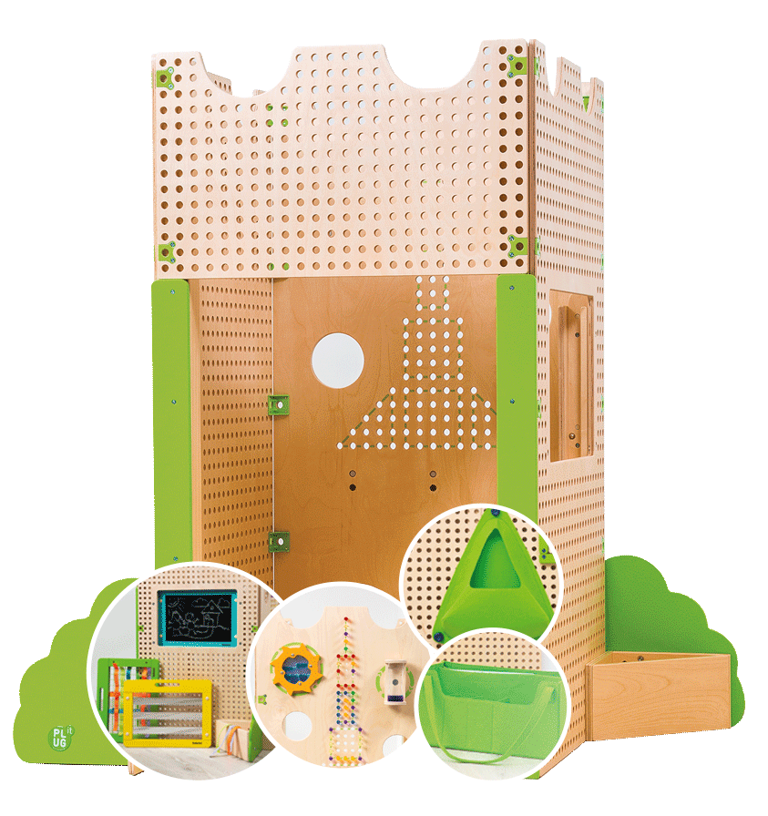 Nova kućica za igru s mnoštvo manipulativnih aktivnosti na zidnim okvirima kućice koja obogaćuje dječju kreativnu igru. Akrilni čepovi sjaju kao dragocijeni nakit te se mogu stvarati razni oblici i aplikacije. 2 elementa iluzije potiču razvoj percepcije te istraživanja. Posebnost ove kućice čini prozor u koji se mogu umetnuti i tri različita okvira. Okvir ogledala iznenađuje s optičkom iluzijom te potiče razvoj govora. Mrežasti okvir koristi se za tkanje ili poticanje razvoja fine motorike djece. Okvir za magnet ili ploču može se koristi za igru uloga u školskom sustavu.