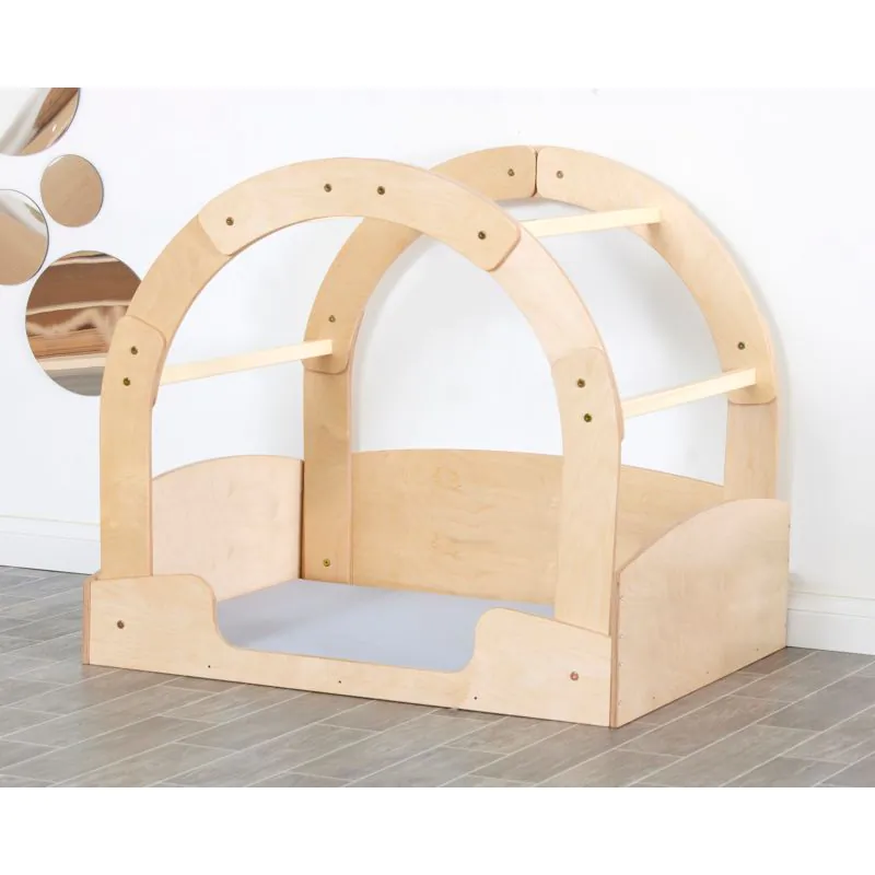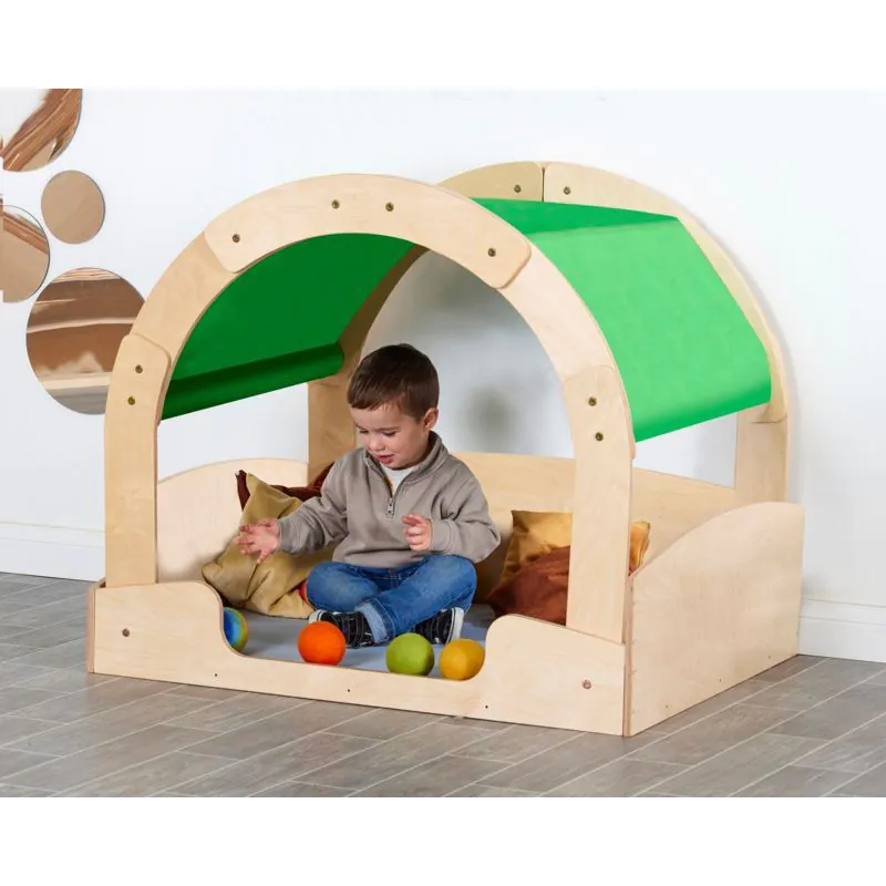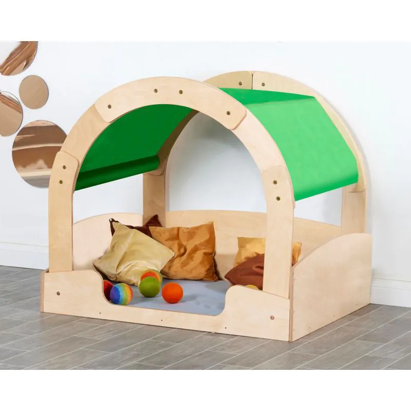 U kućicu za odmor i opuštanje uključena je gnjecava podloga koja savršeno pristaje unutra. Jednostavan krov omogućava dodavanje različitih zanimljivih materijala i ukrasa.