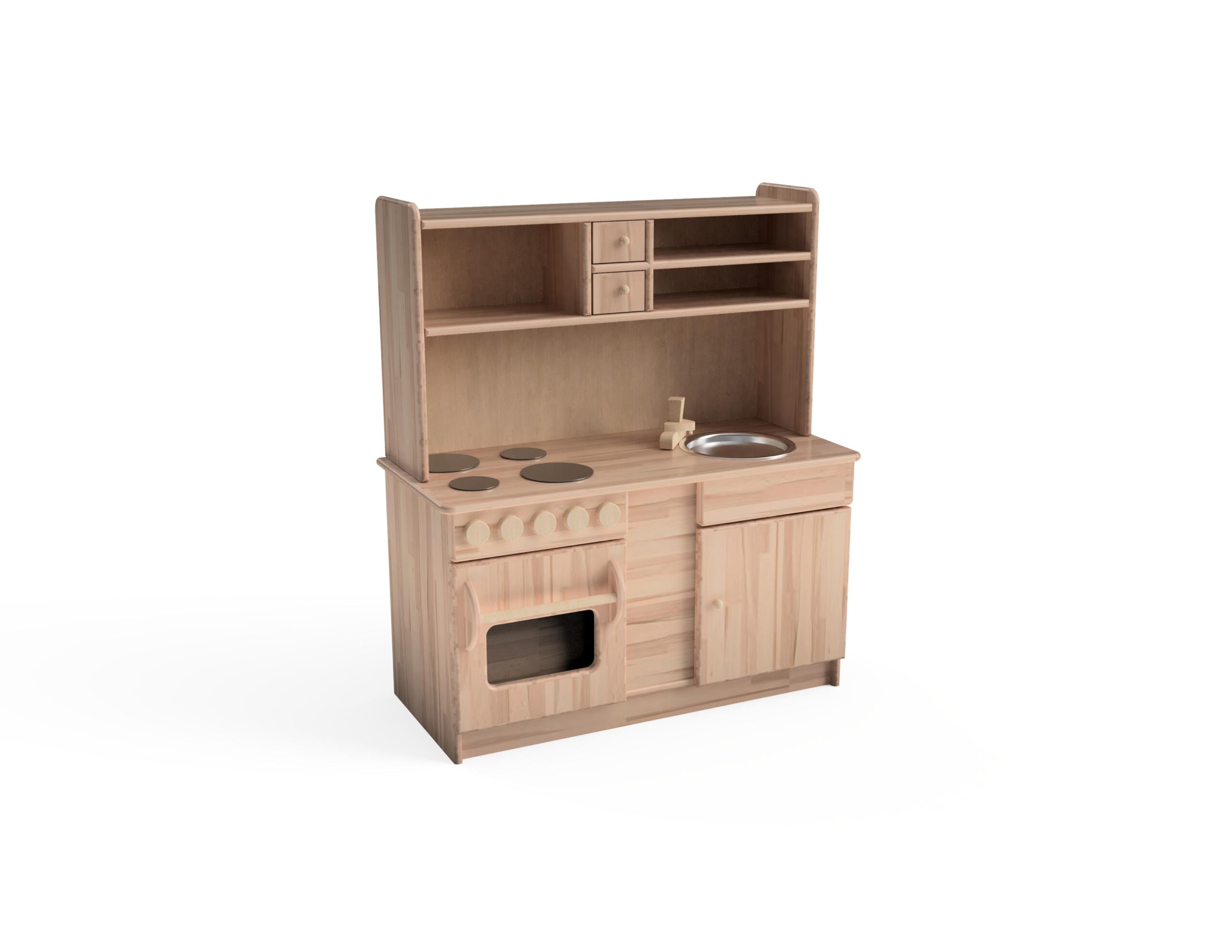 Dvodijelna kuhinja od bukovog masiva jest najprodavanija kuhinja. Zbog svoje iznimne kvalitete i čvrstoće traje generacijama. Sadrži pećnicu, štednjak, sudoper i police s ladicama. Zaštićena u četiri sloja visokokvalitetnim ekološkim lakom na bazi vode. Izrađen od od bukovog masiva u debljini od 18 mm.