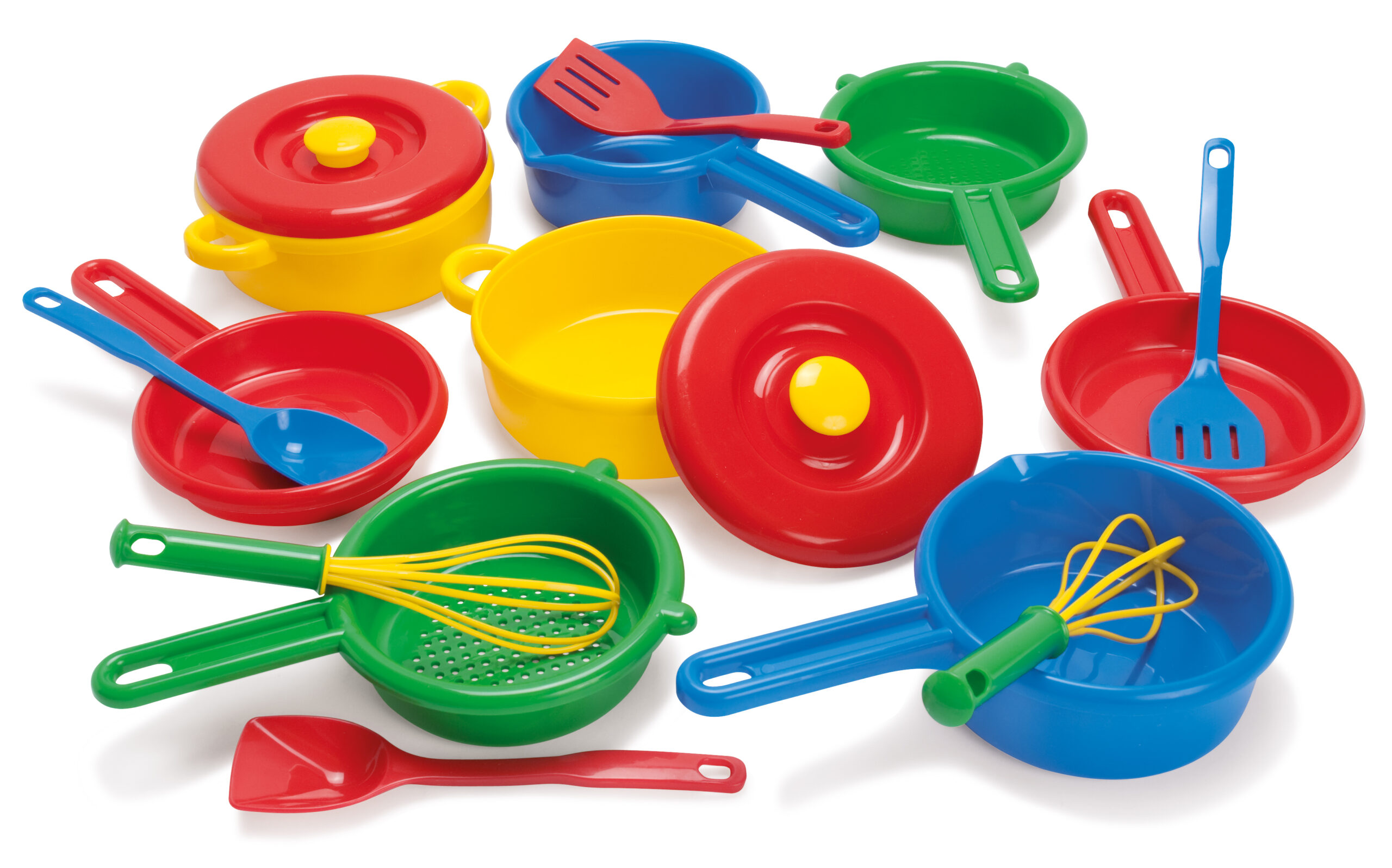 Savršeni set za kuhanje, omogućuje mnoštvu djece igranje. Pomaže u jačanju socijalnih vještina kroz igru s drugom djecom. Svi dijelovi mogu se prati u perilici suđa. Set od 16 komada.