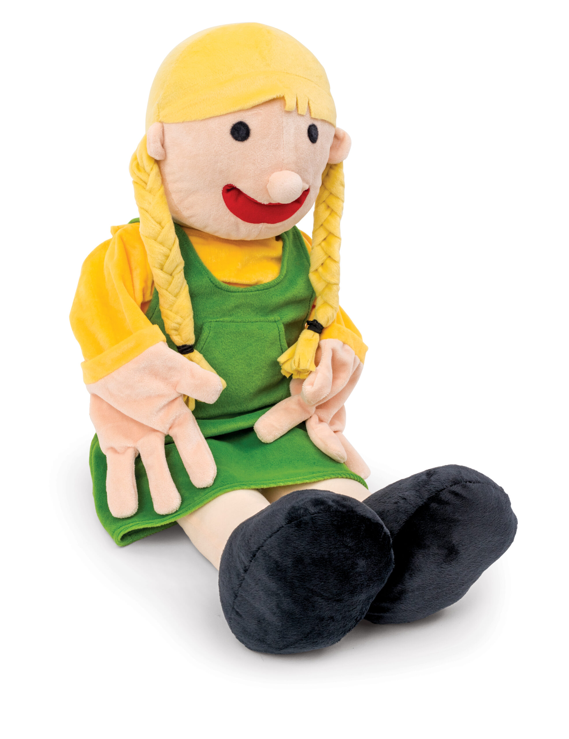 Lutkica Megi izrađena je od mekane tkanine. Glava, usta i ruke pomiču se vlastitim manipuliranjem. Potiče socioemocinalni razvoj i razvoj govora djece.