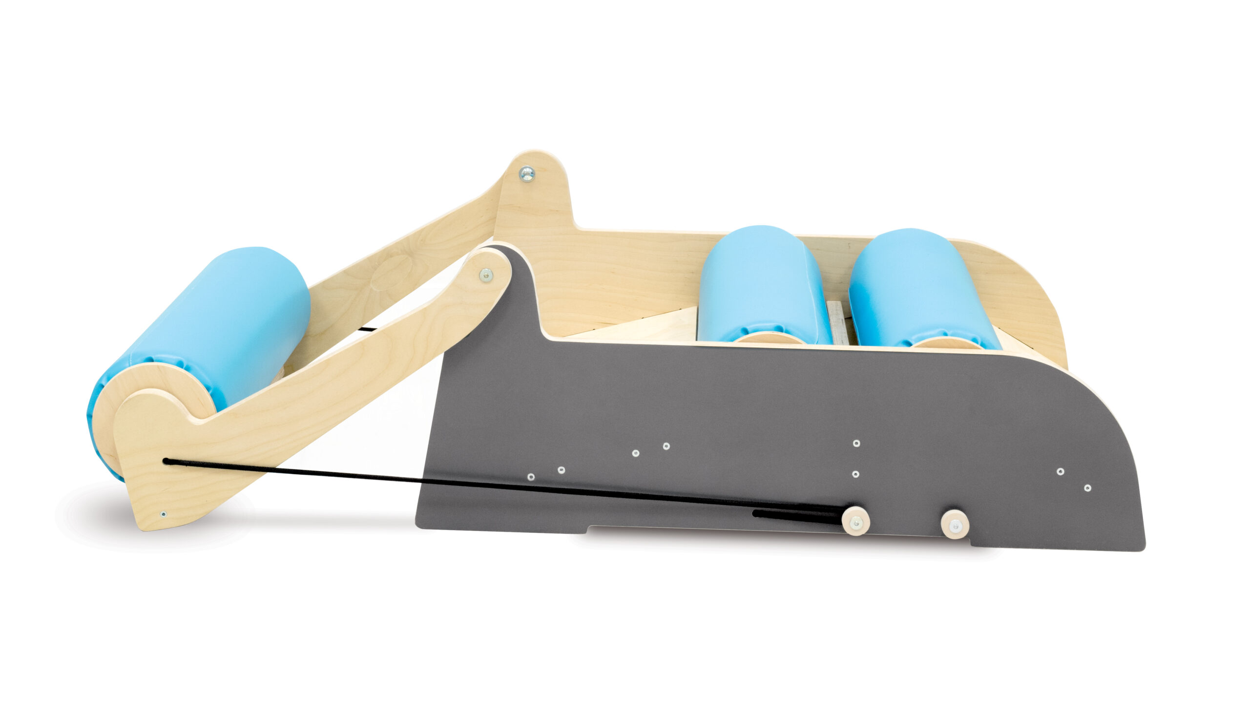 Terapeutska letva izrađena od laminirane ploče, PVC materijala i gume. Prilagođava se djetetu.