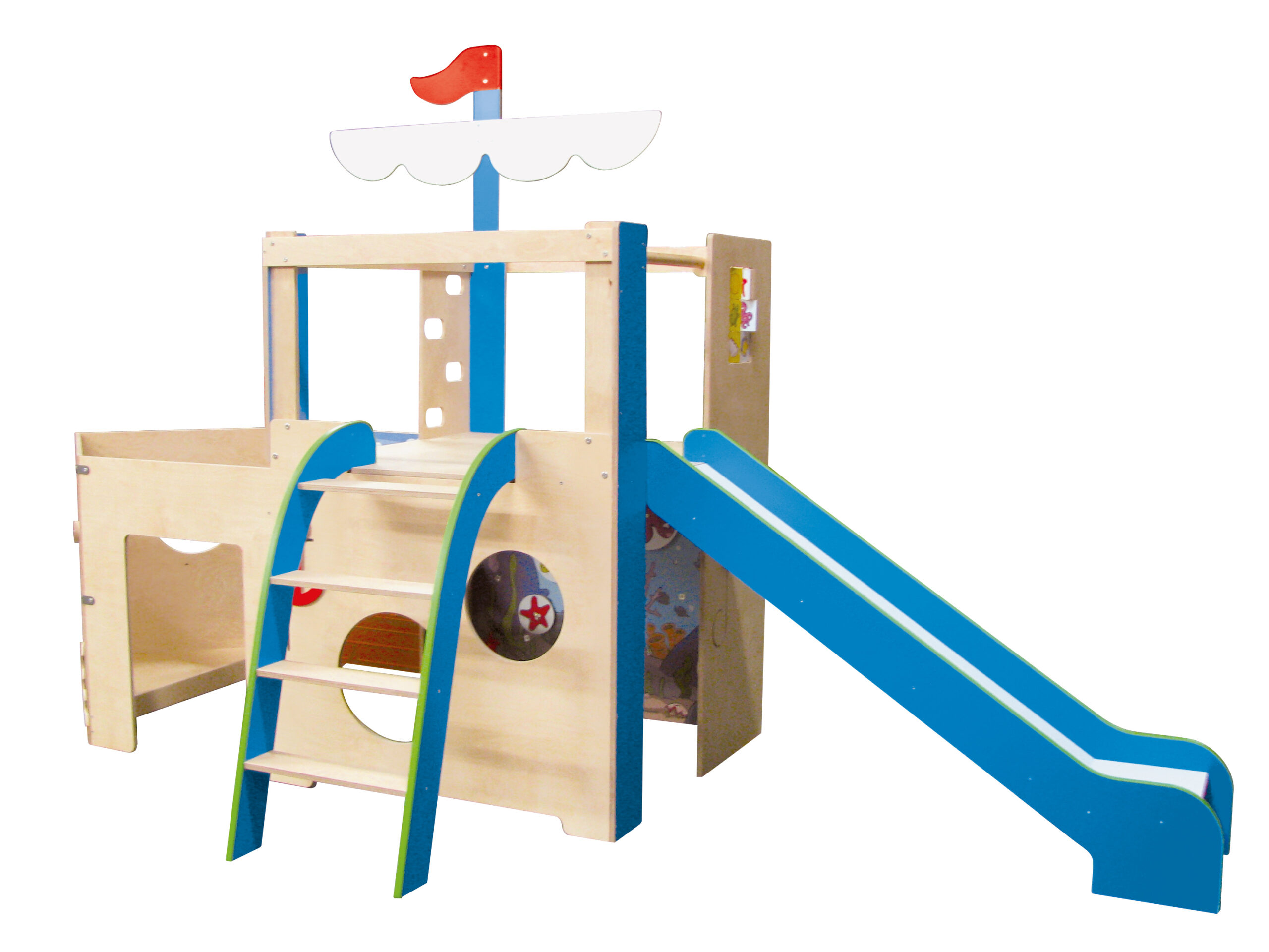 Mali manipulativni brod s mnogo senzornih i motoričkih elemenata. Potiče se razvoj dječje motoričke aktivnosti na zabavan i edukativan način. Koristi se za različite motoričke aktivnosti poput penjanja, spuštanja, provlačenja…