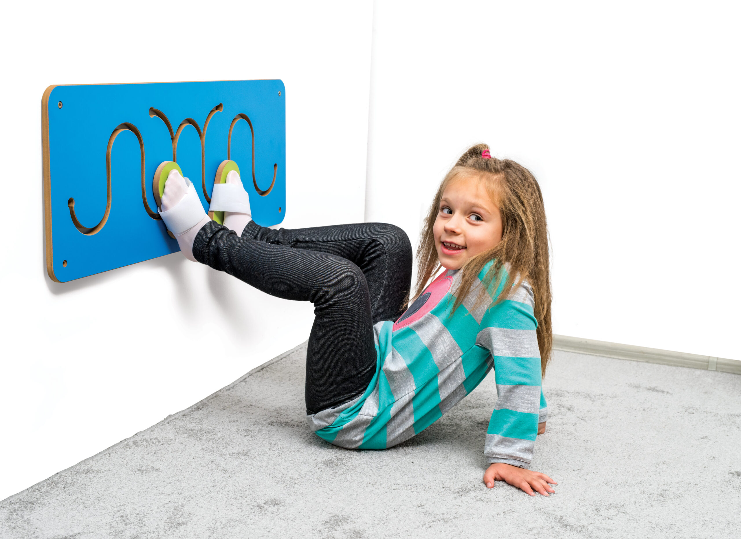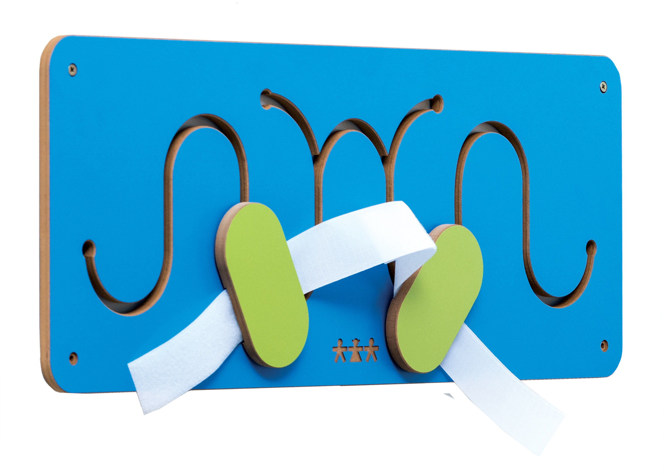 Manipulativna ploča za stopala opremljena s papučama na čičak koje se lako prilagođavaju veličini stopala djece. Potiče razvoj preciznosti, fleksibilnosti te izdržljivosti.