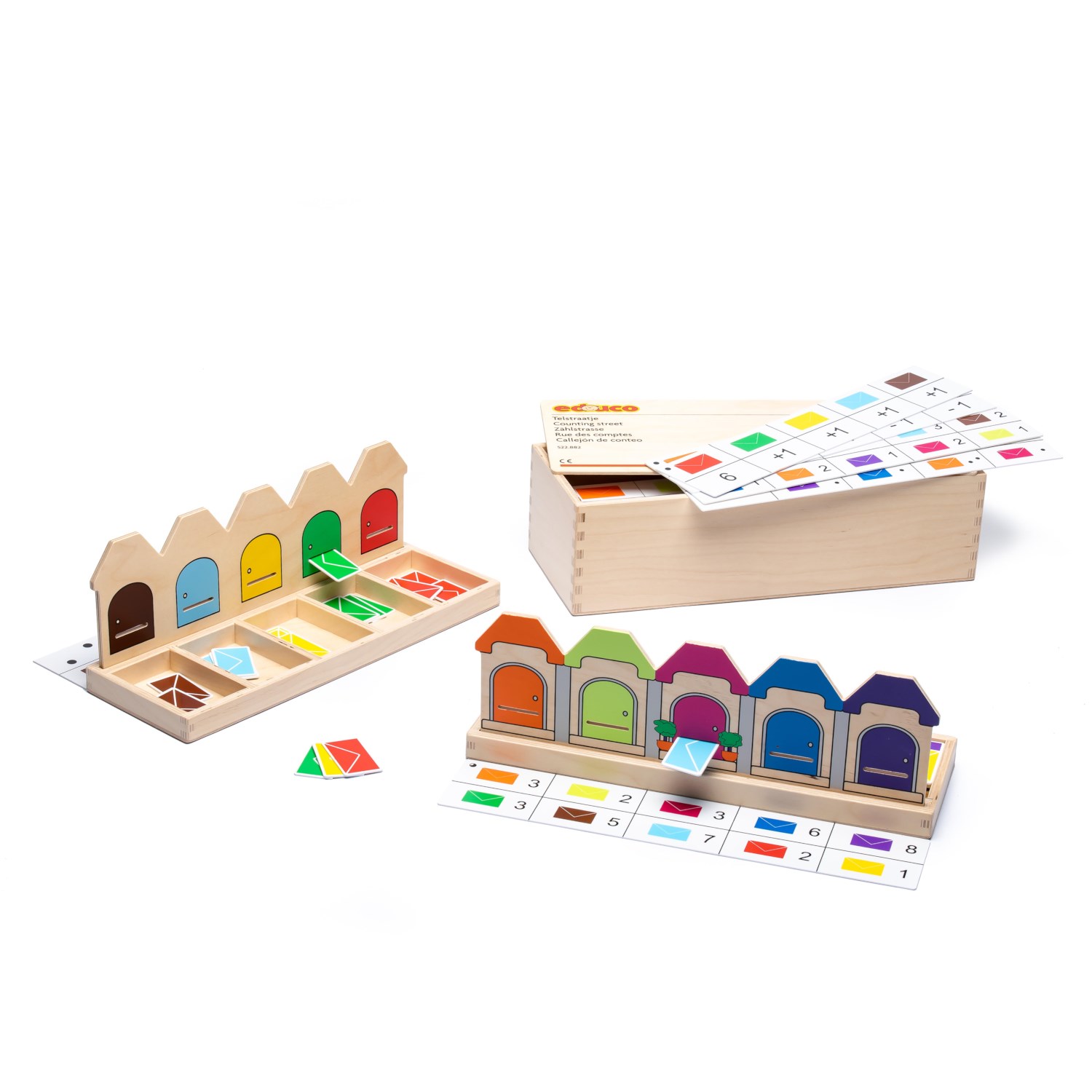 Dostavi slova i nauči brojeve. Potrebno je smjestiti kućicu na stalak i položiti pisma uz odgovarajuću kuću prema boji. Zatim treba postaviti broj iznad kuće i dodati broj pisama prema broju na kartici. Igra se može razvijati dalje stvaranjem nizova brojeva, dodavanjem brojeva koji nedostaju ili isporučivanjem pošte. Poticanje brojenja do 10 te upoznavanje prvih matematičkih vještina.