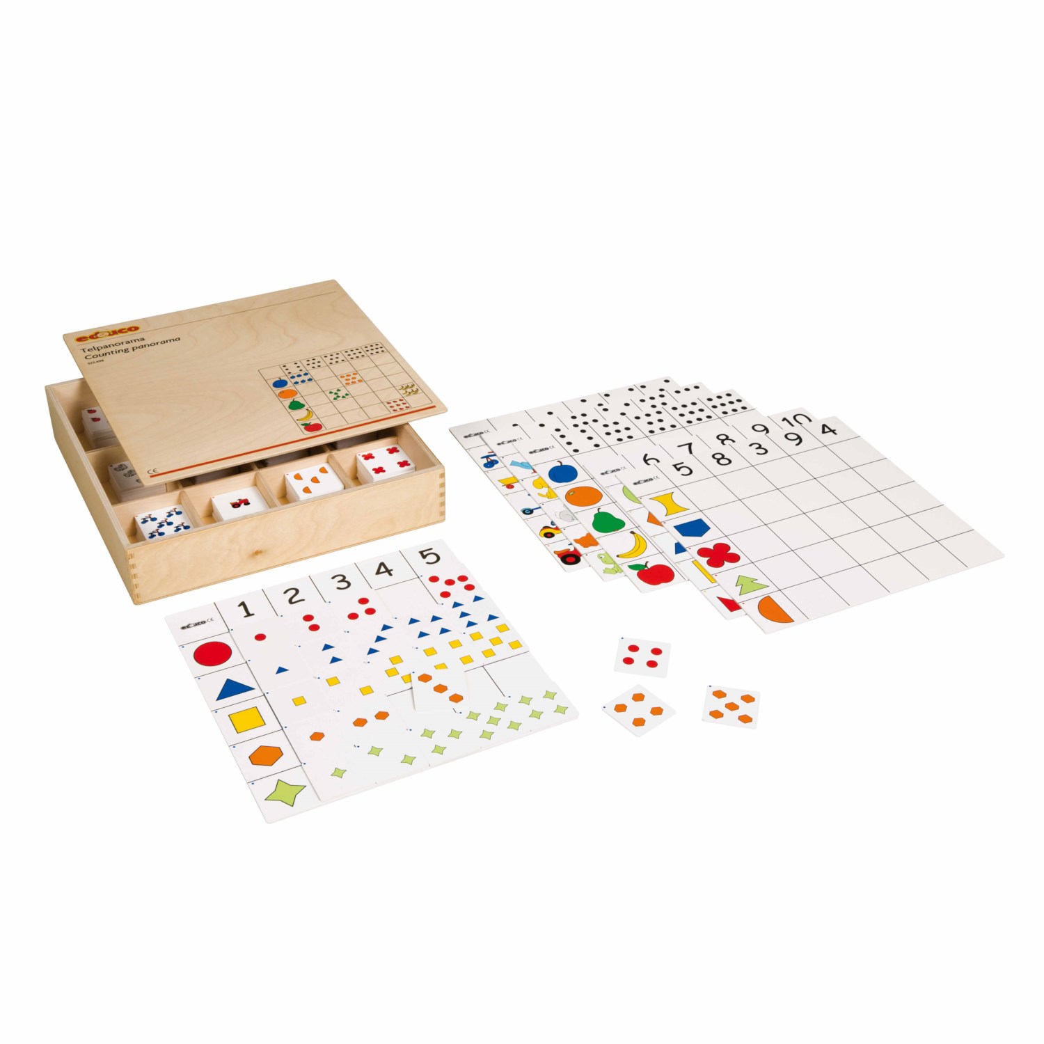 Set s drvenom kutijom i šest velikih ploča sa zadatcima i 150 kartica s rješenjima. Kartice treba klasificirati prema simbolu na ploči sa zadatkom, zatim ih postaviti na odgovarajuća mjesta kombinirajući zadatke iz reda i stupca, a raspoznavajući brojeve i simbole.