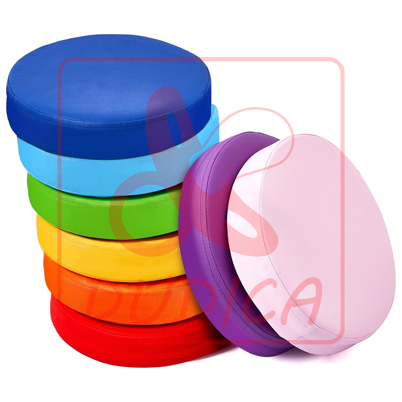 Šarene mekane podloge za edukativne fizičke vježbe. Set od 8 podloga u raznim bojama. Lagane i mekane. Potiče se razvoj motoričkih sposobnosti i vizualne percepcije djece.