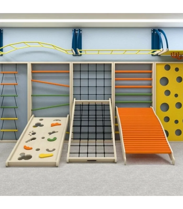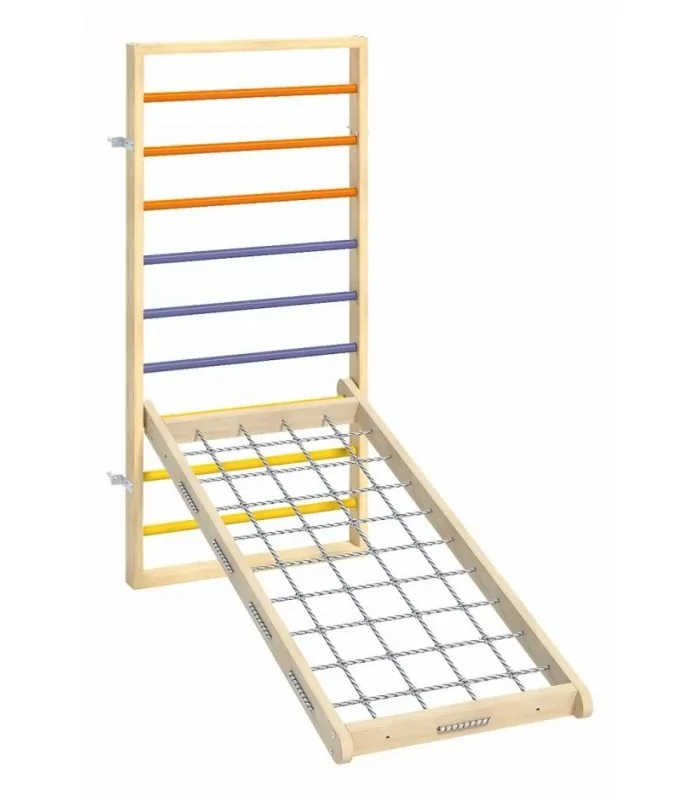 Mrežasti spust za poticanje razvoja motoričkih sposobnosti djece s naglaskom na ravnotežu i snagu. Izrađeno od bukovog drveta.