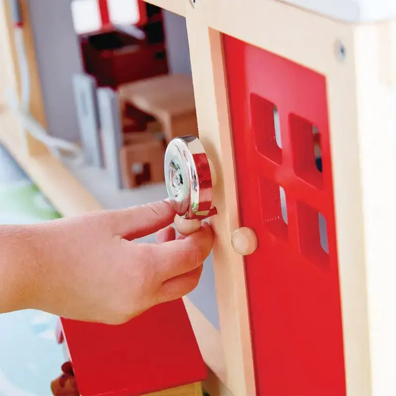 Sadrži četiri lutkice te sedam komada namještaja. Nudi različite načine igre: odnaprijed, iza, sastrane i na vrhu.
