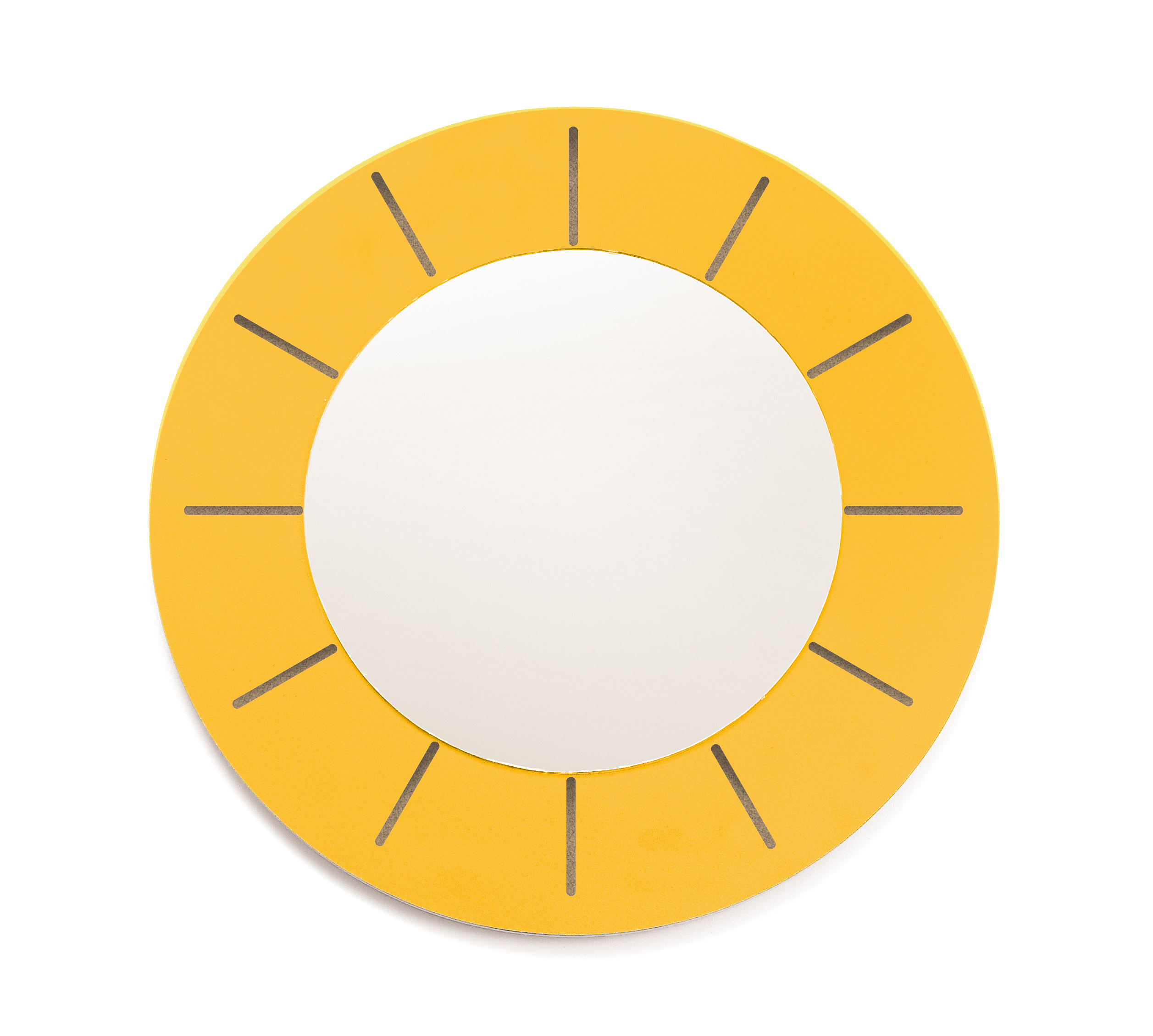 Sigurnosno akrilno ogledalo smješteno je u drveni okvir s motivom sunca. Promatrajući sebe otkrivaju vlastiti identitet.