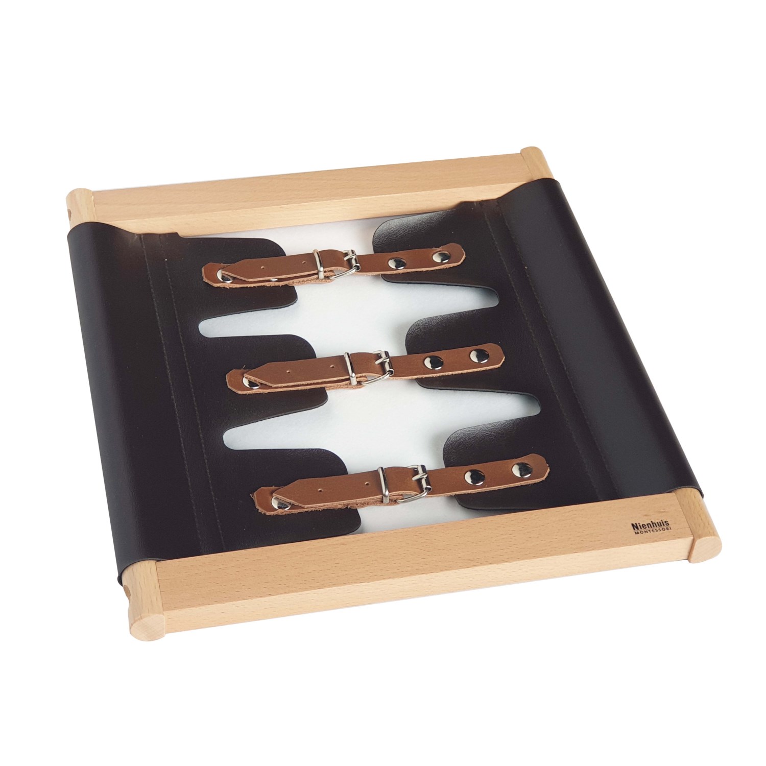 Drveni okvir s platnom. Okvir Montessori pomagalo je za vježbe koordinacije ruke i oka i motoričke vježbe šake i prstiju. Takoder, pomaže pri učenju životno-praktičnih aktivnosti vezanja, kopčanja, zatvaranja patent zatvarača…