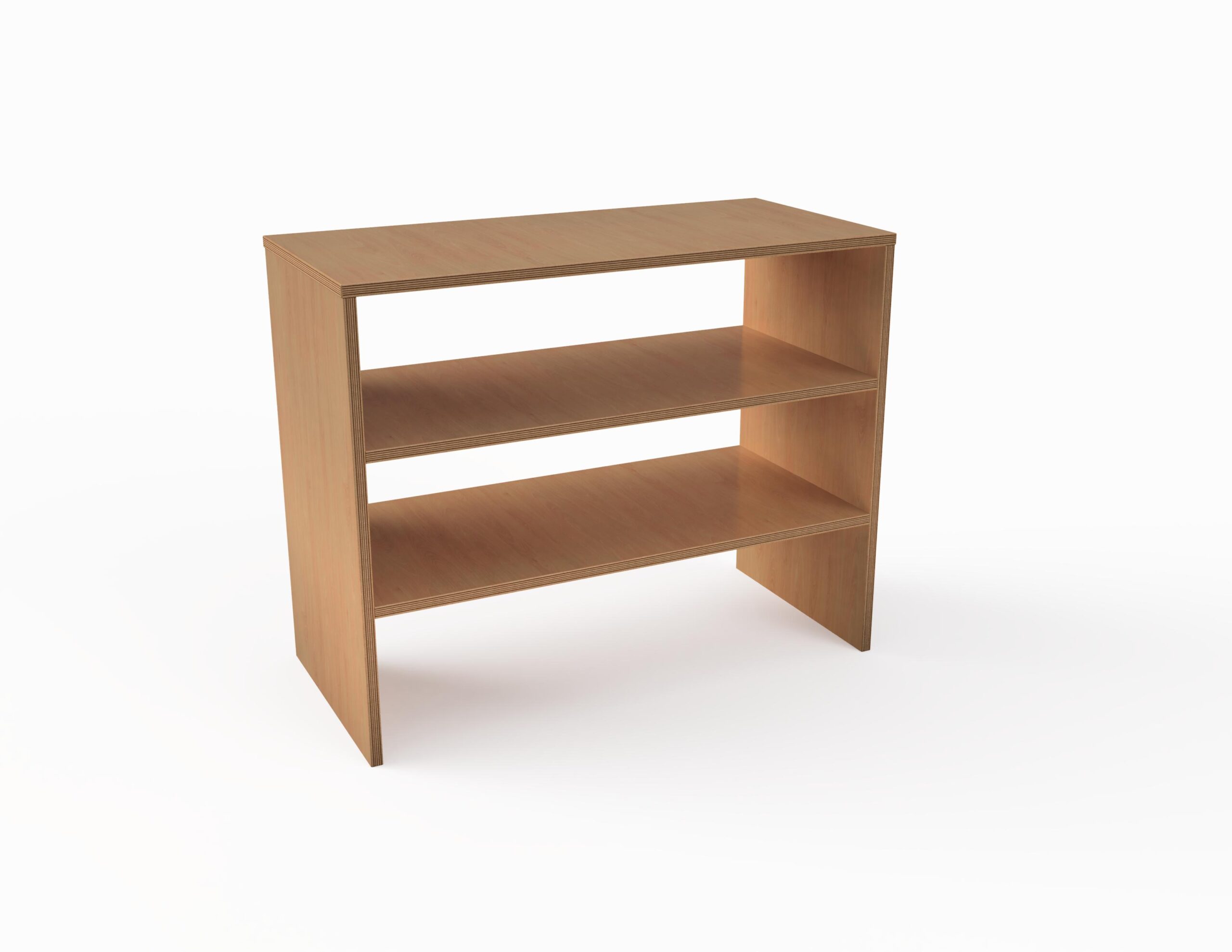 Ormar obostrano otvoreni s 2 police. Izrađen od materijala po izboru u debljini od 18 mm. Spajan je bez vidljivih spojeva.
