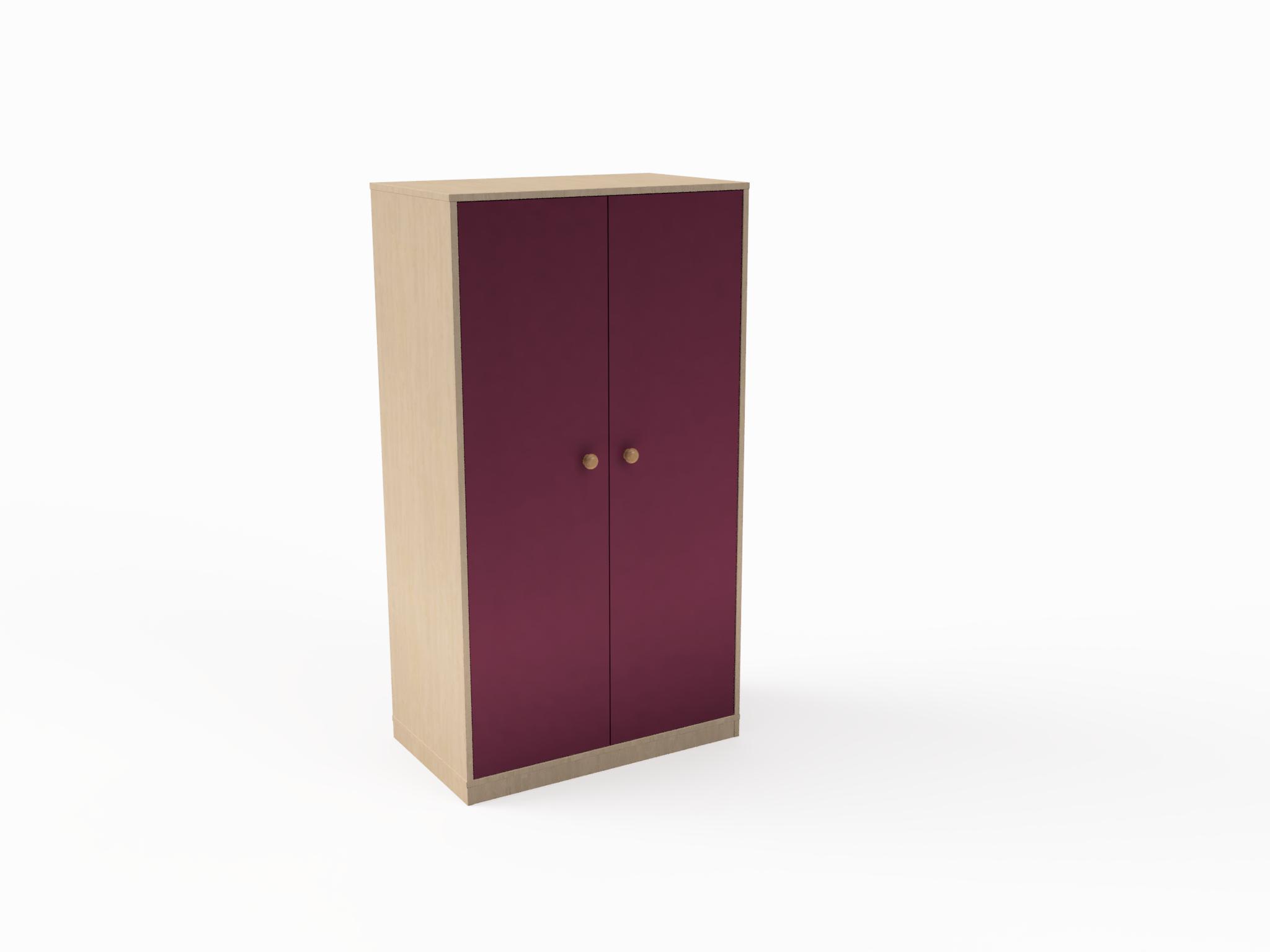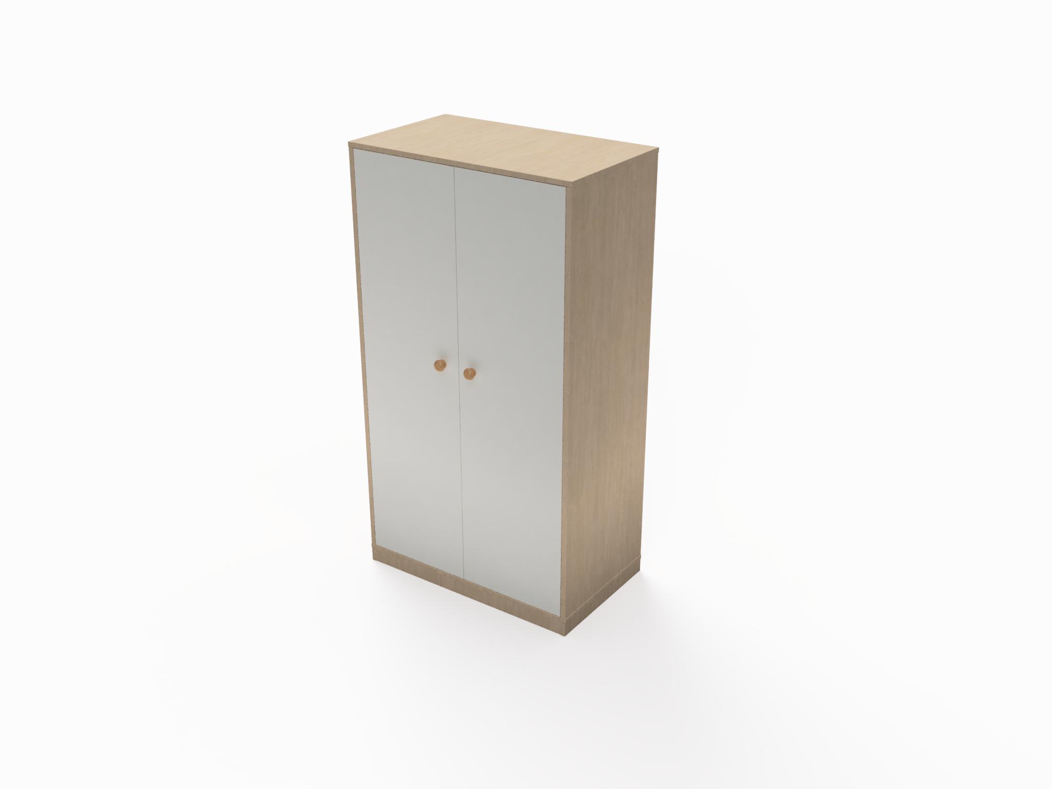 Ormar zatvoreni s dvama vratima i 4 police. Izrađen od materijala po izboru u debljini od 18 mm. Spajan je bez vidljivih spojeva. Stražnja strana izrađena od istog materijala. Mogući je izabrati leđa obložena magnetnom pločom, pluto pločom, pločom za pisanje kredom, akrilnim ogledalo ili akrilnim leđima u boji. Fronte vrata mogu biti izrađene u boji po izboru iz palete boja koje nudimo. Na ormar uključena je bukova ručkica lakirana visokokvalitetnim bezbojnim lakom na bazi vode, koja se spaja bez vidljivog spoja na vrata i ladice te tako daje dugotrajnost u korištenju. Pružamo mogućnost ugradnje drugih dizajnerskih ručkica prema želji i potrebi. Sva vrata mogu se urediti aplikacijom po izboru.