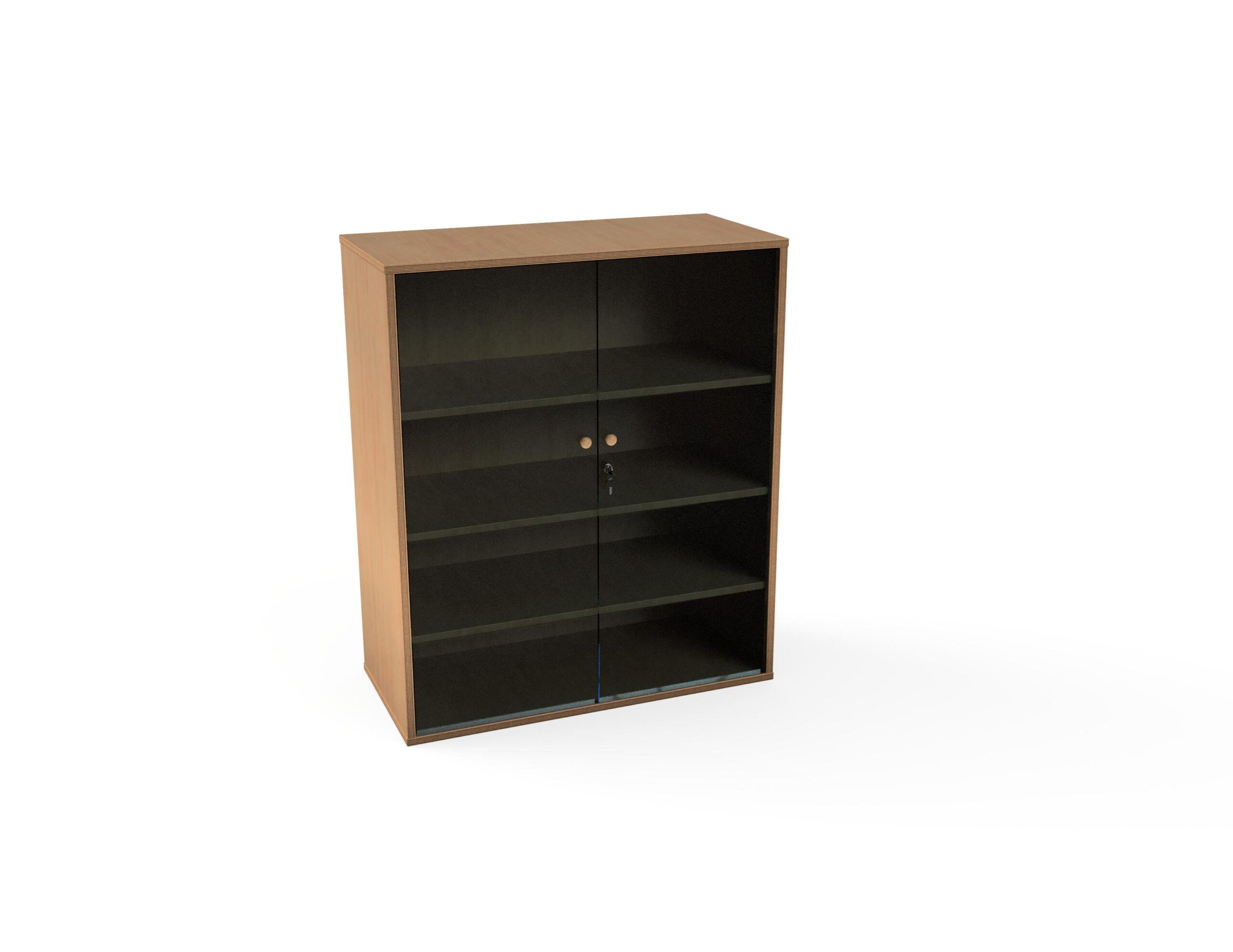 Ormar zatvoreni s dvama staklenim vratima, bravicom i četirima policama. Može se montirati i na zid samostalno. Izrađen od materijala po izboru u debljini od 18 mm. Spajan je bez vidljivih spojeva. Stražnja strana izrađena od istog materijala. Mogući je izabrati leđa obložena magnetnom pločom, pluto pločom, pločom za pisanje kredom, akrilnim ogledalo ili akrilnim leđima u boji. Fronte vrata mogu biti izrađene u boji po izboru iz palete boja koje nudimo. Na ormar uključena je bukova ručkica lakirana visokokvalitetnim bezbojnim lakom na bazi vode, koja se spaja bez vidljivog spoja na vrata i ladice te tako daje dugotrajnost u korištenju. Pružamo mogućnost ugradnje drugih dizajnerskih ručkica prema želji i potrebi.