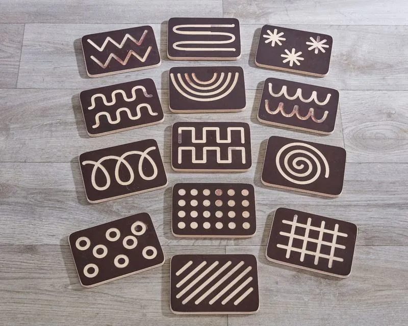 Set od 13 malih ploča za pisanje za poticanje rane pismenosti djece. Čvrste su i lagane. Crna površina ploča poboljšava vidljivost pisanja ili crtanja.