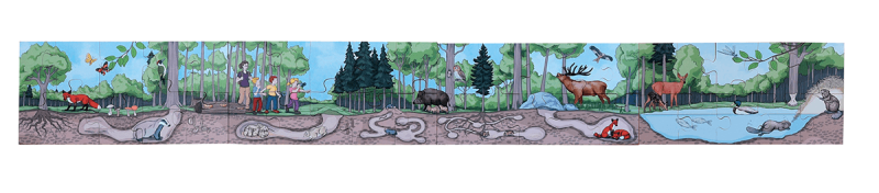 Zanimljiva situacija u šumi koja potiče djecu da pobliže istražuju slagalicu. Potrebno je dobro pogledati koje se sve životinje kriju iznad i ispod zemlje.