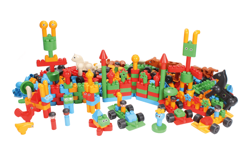 Prve kocke za igru nude djeci različite mogućnosti stvaranja u odgojno-obrazovnim ustanovama. Sadrži i velike kocke za najmlađe, 12 domaćih životinja i 12 sastavljenih automobila.