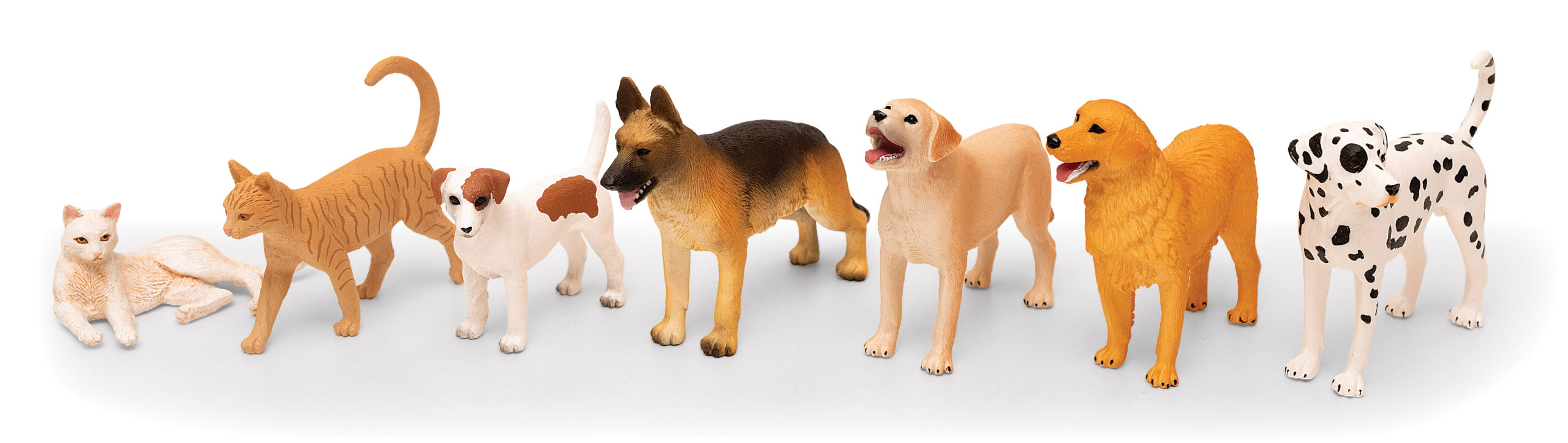 Set od sedam velikih mačaka i pasa. Odličan set za poticanje kreativne igre djece. Proširuju se dječje spoznaje o domaćim životinjama.