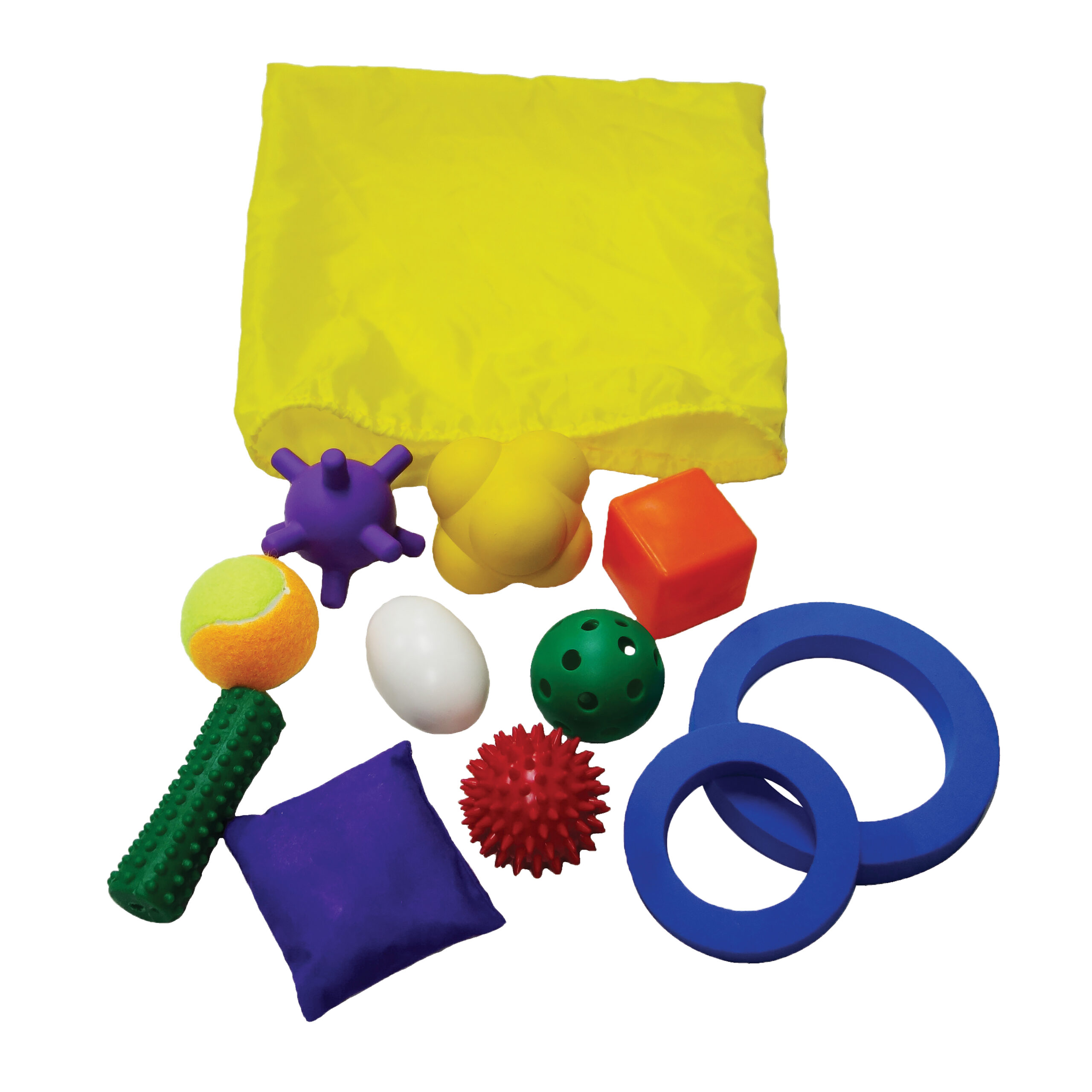 Skup senzornih pomagala različitih oblika i tekstura koji pružaju različite taktilne osjete; 12 oblika u vrećici.
