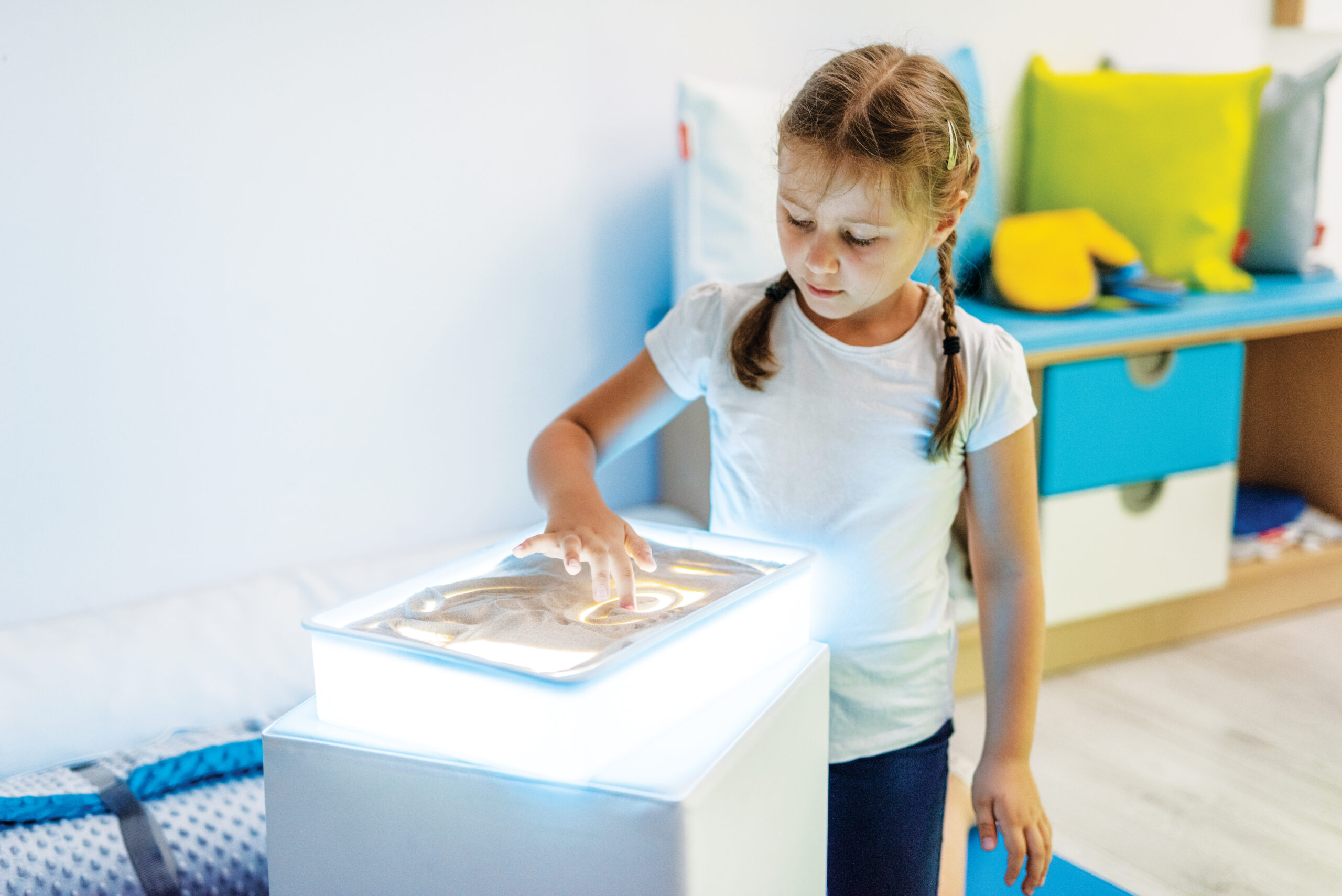 Potiče senzomotorni razvoj djece s naglaskom na vizualni i taktilnu percepciju djece. Povišeni zidovi sastrane preveniraju rasipanje pijeska.