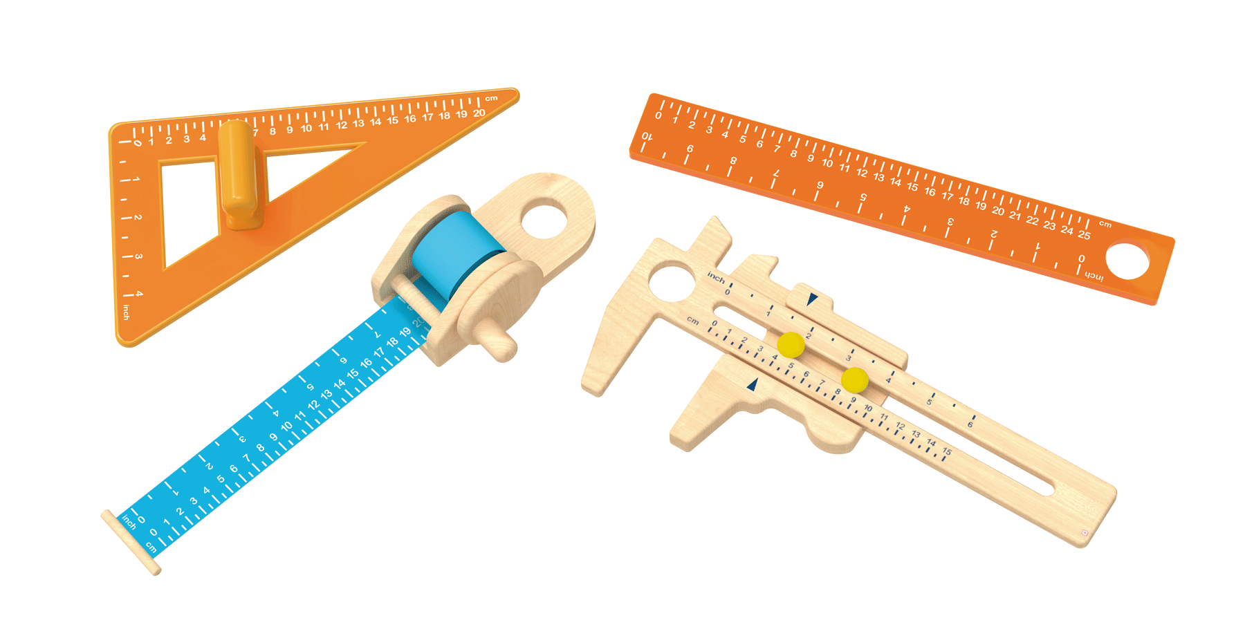 Setom alata za mjerenje djeca otkrivaju što je duže, kraće, više ili šire. Set sadrži fleksibilnu mjernu vrpcu i kalibru kako bi djeca istraživala unutarnji i vanjski opseg. Uspoređuju predmete i uočavaju razlike, upoznaju se s mjernim jedinicama i njihovom klasifikacijom.