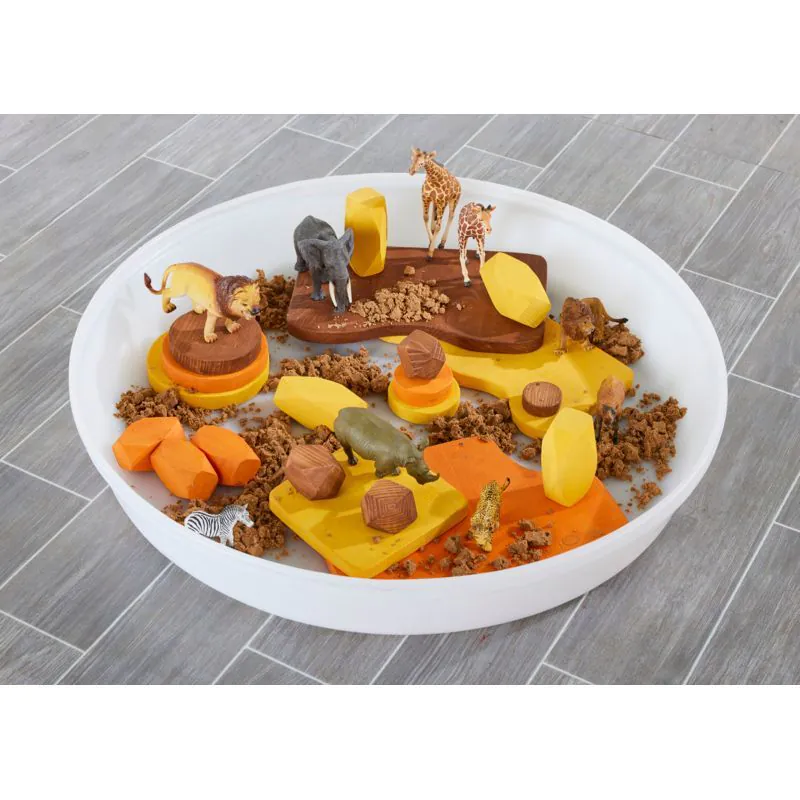 Set oaze u narančastim, žutim i smeđim dijelovima uvodi djecu u svijet safarija i igre u pustinji. Dodajući i životinje ili pijesak stvara se privlačna pozornica za igru. Idealno za slaganje i sortiranje.
