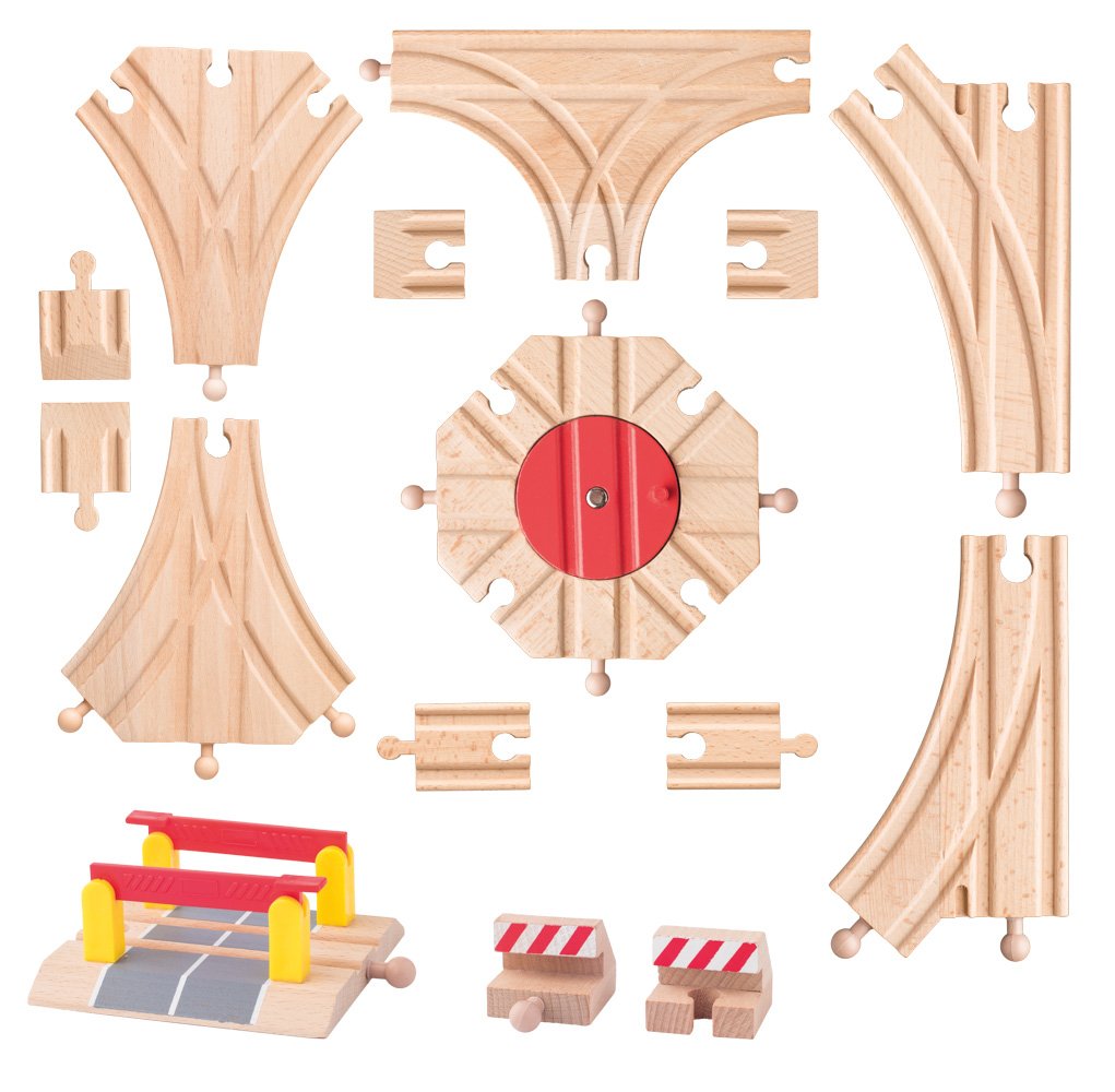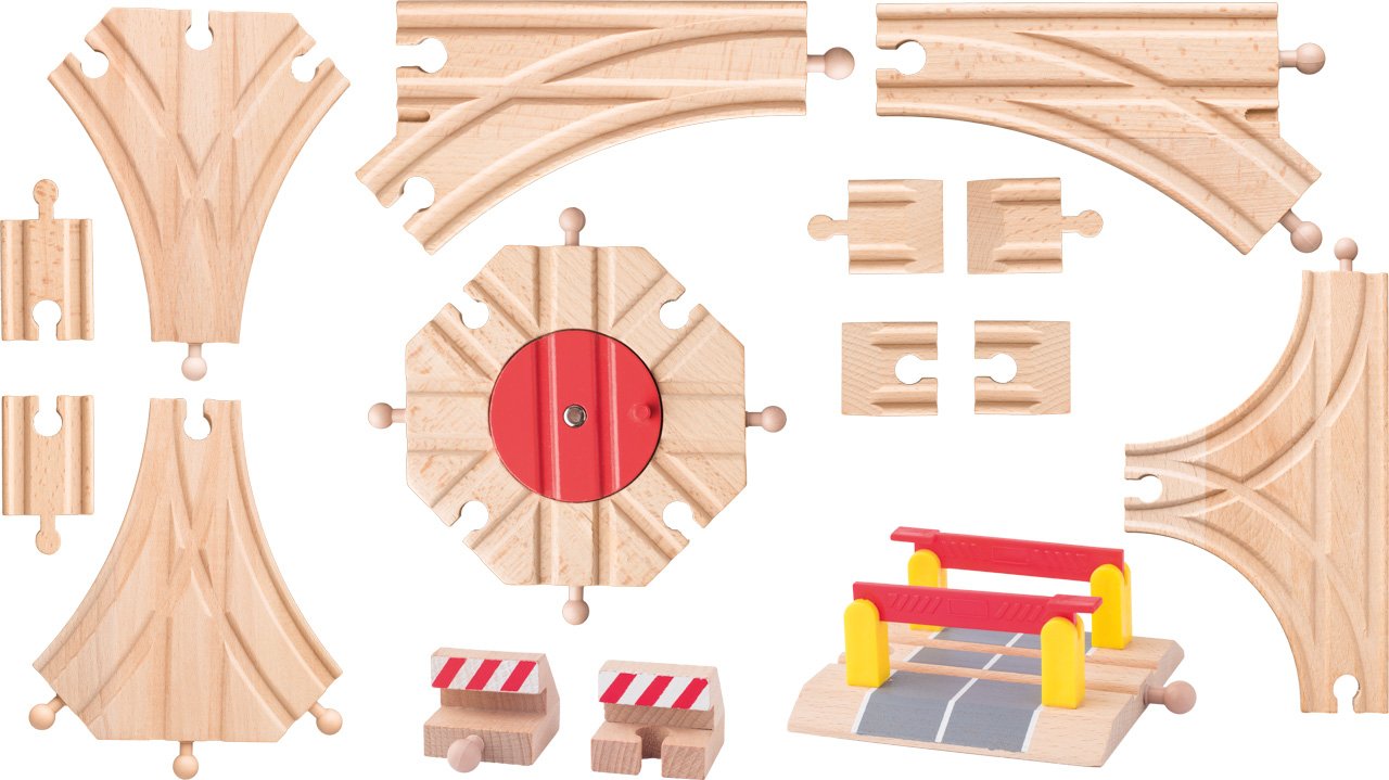Set tračnica dolazi u različitim veličinama i oblicima. Set omogućava djeci da stvore vlastitu željeznicku stanicu u novim smjerovima kretanja.