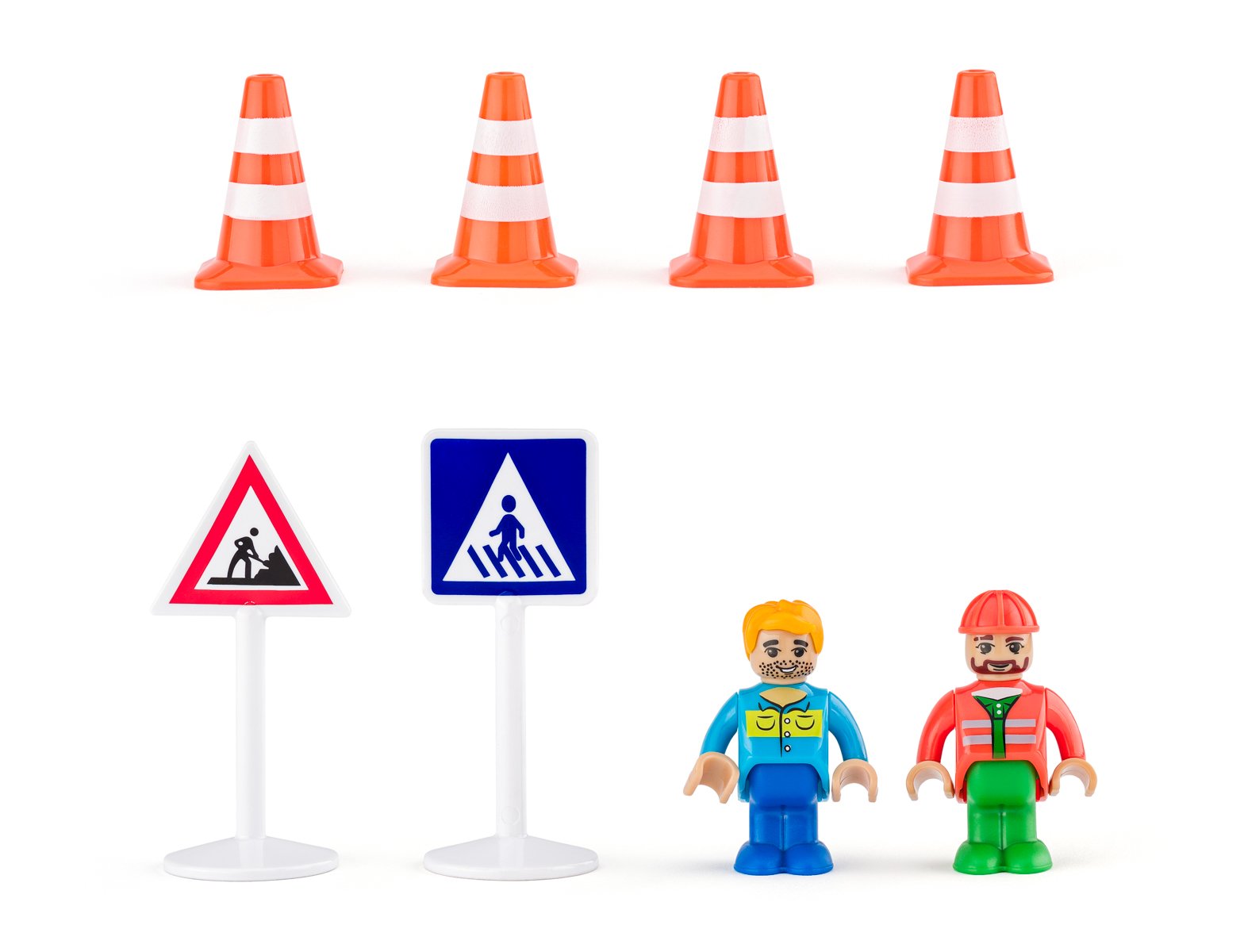 Set vozila izrađenih od najbolje kvalitete drva. Djeca se uživljavaju u ulogu građevinara, vozača, radnika te šire svoju spoznaju o prometnim znakovima.