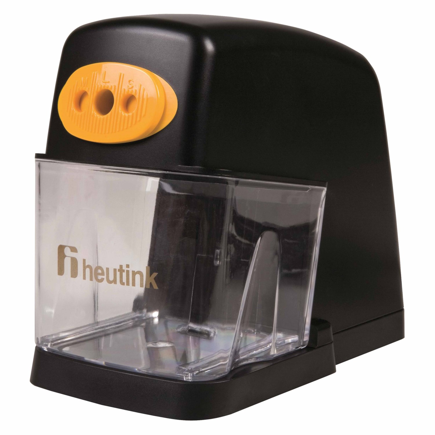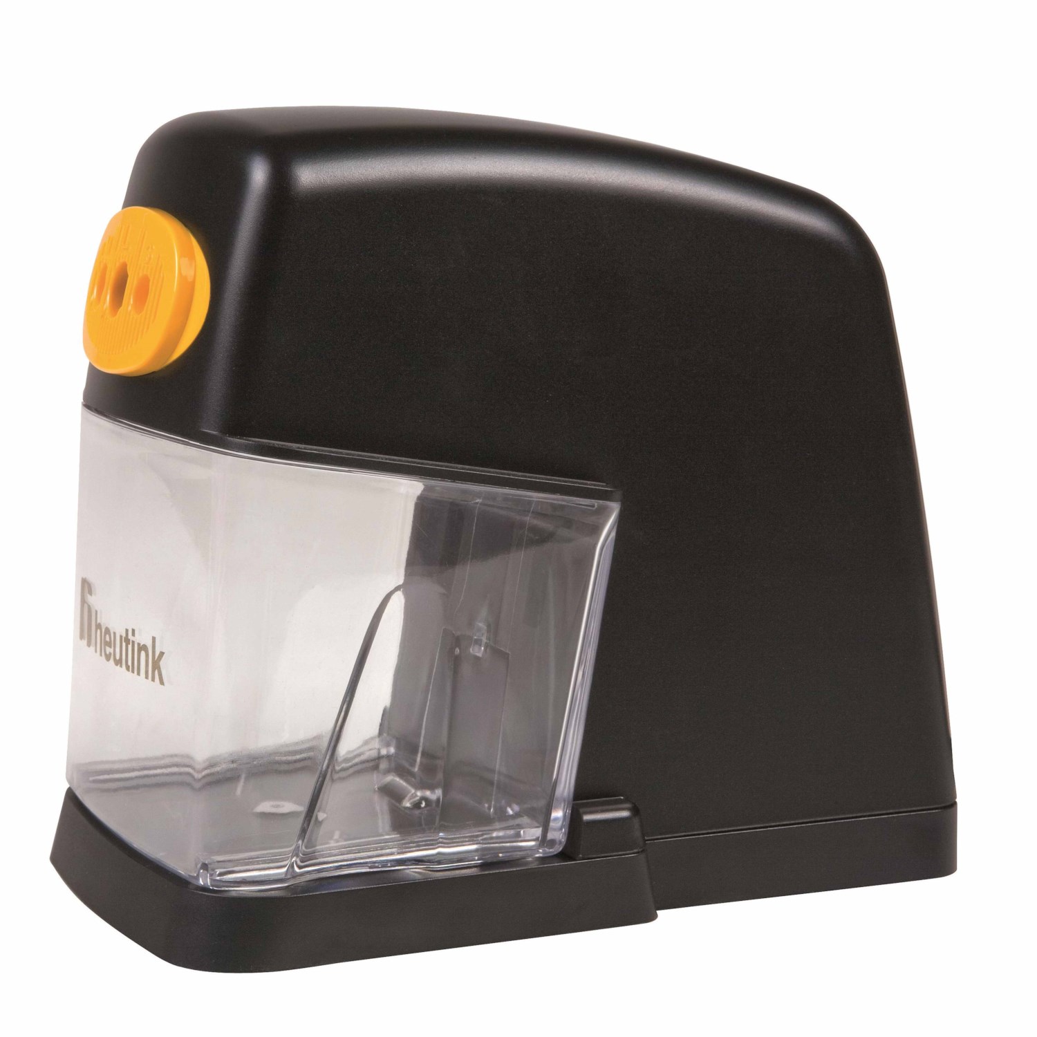 Veliko električno šiljilo za olovke i bojice različitih debljina. Samo se zaustavlja kad našilji olovku, a sav otpad baca u prazni spremnik.