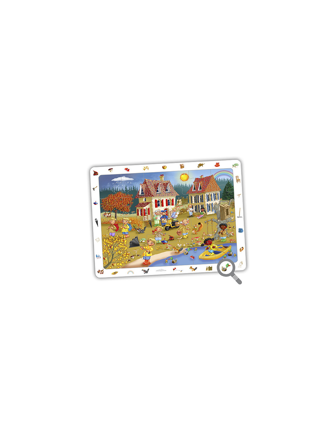 Set od 4 mekane slagalice s motivima godišnjih doba, svaki s 24 elementa. Rubovi slagalica su oslikani raznim sitnim predmetima koji se nalaze na slagalicama. Složite sve dijelove slagalica te otkrijte četiri lijepe slike godišnjih doba. Nakon toga, bacite se u ulogu malog detektiva te, pažljivo promatrajući svaku slagalicu, pokušajte na njoj pronaći sve predmete koji su oslikani na rubovima. Vidite li gdje se skrivaju? Strpljenje i koncentracija te pažljivo proučavanje svakako će vam pomoći u ovoj zabavnoj igri traženja.