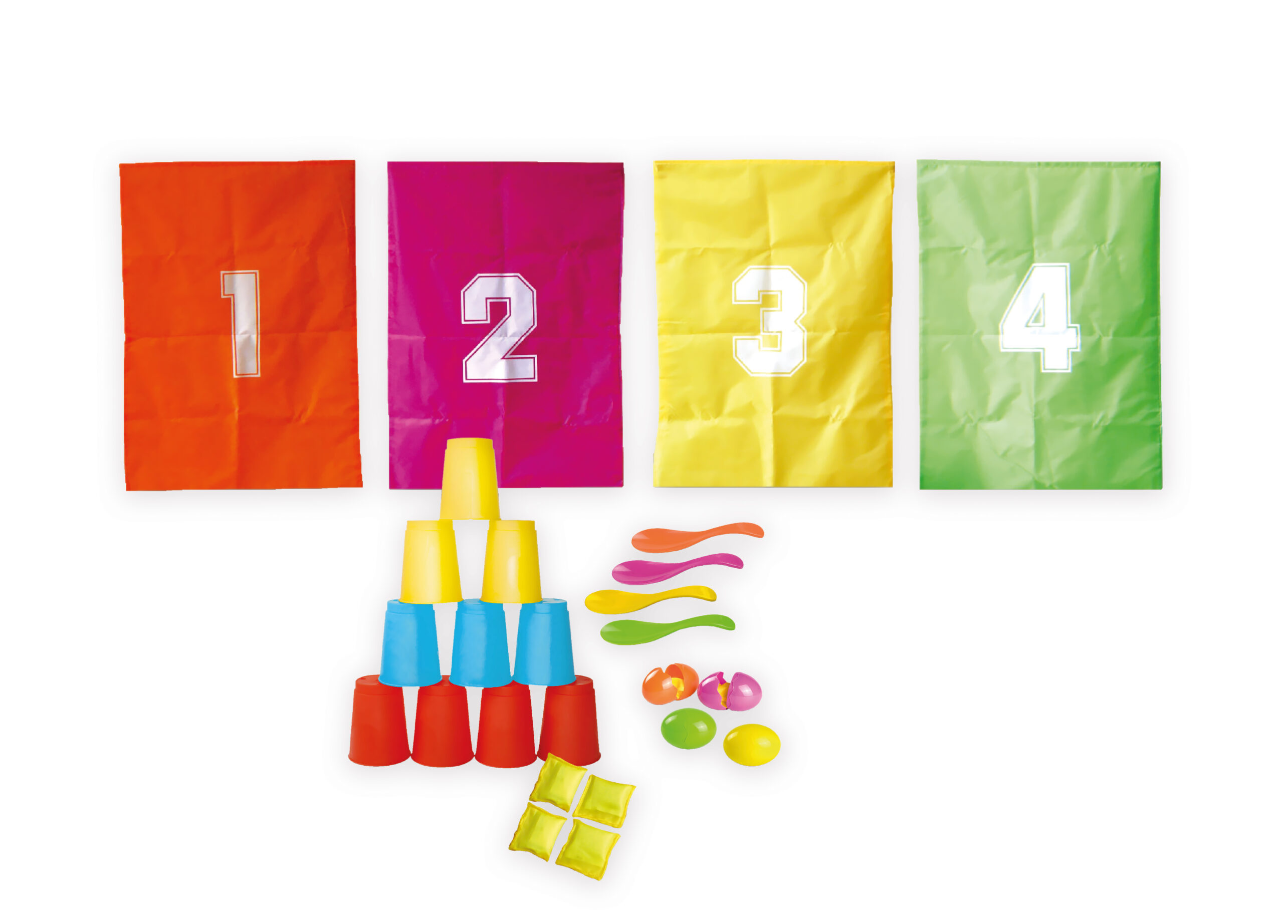 32 elementa – 4 vrećice, 9 čaša, 4 vreće, 4 žlice, 4 plastična jaja, 4 plastična čavla, 2 trake za početak i kraj aktivnosti