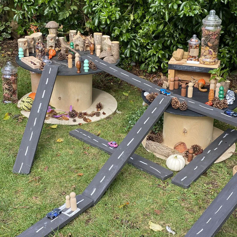 Djeca mogu voziti svoje autiće po ovim čvrstim cestama te ih mogu označiti kredom vlastitim prometnim znakovima, oznakama traka. Svaka staza je dimenzija 80 cm x 9 cm, nudeći dovoljno prostora za kretanje automobilima.
