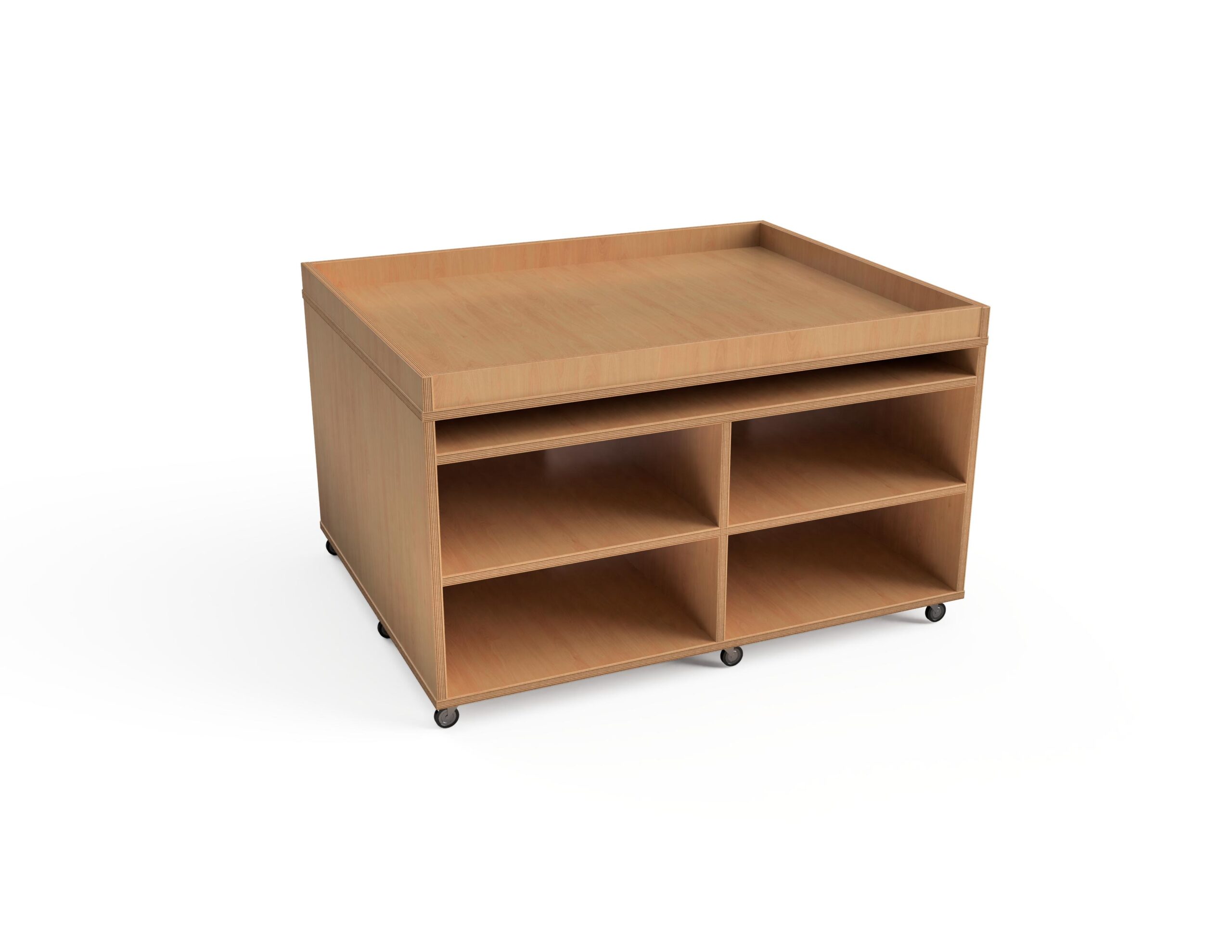 Praktičan stol dimenzijama odgovara svim svjetlećim panelima. JN0020. Panel savršeno sjeda na gornju plohu stola. Nakon upotrebe svjetleći panel može se odložiti na policu ispod, a sam stol koristiti za neku novu aktivnost. Stanu i dva Panela JN0020 kako bi pružili mogućnost zajedničkog rada većeg broja djece, a veći broj znači više ideja i maštovitih rješenja. Stol sadrži 8 pretinaca za odlaganje u koje se mogu staviti kutije ili neki drugi predmeti. Kutije se zasebno naručuju. Bez oštrih rubova. Element je sastavljen bez vidljivih vijaka. Izrađen od materijala po izboru u debljini od 18 mm. Spajan je bez vidljivih spojeva.