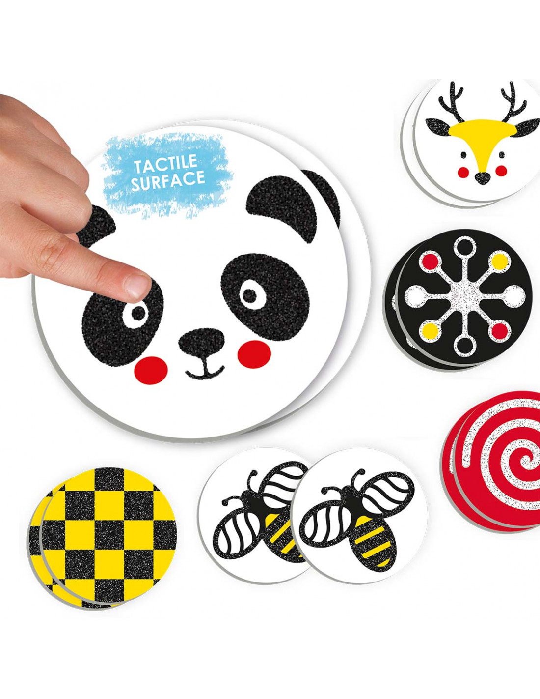 Originalna igra s memorijom dodira koja koristi ilustracije posebno kreirane s velikim kontrastom i grubom teksturom! Razvija vizualnu i taktilnu percepciju, pažnju i prostornu memoriju. Pogodno i za osobe s oštećenjem vida.