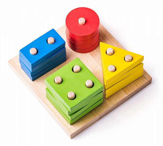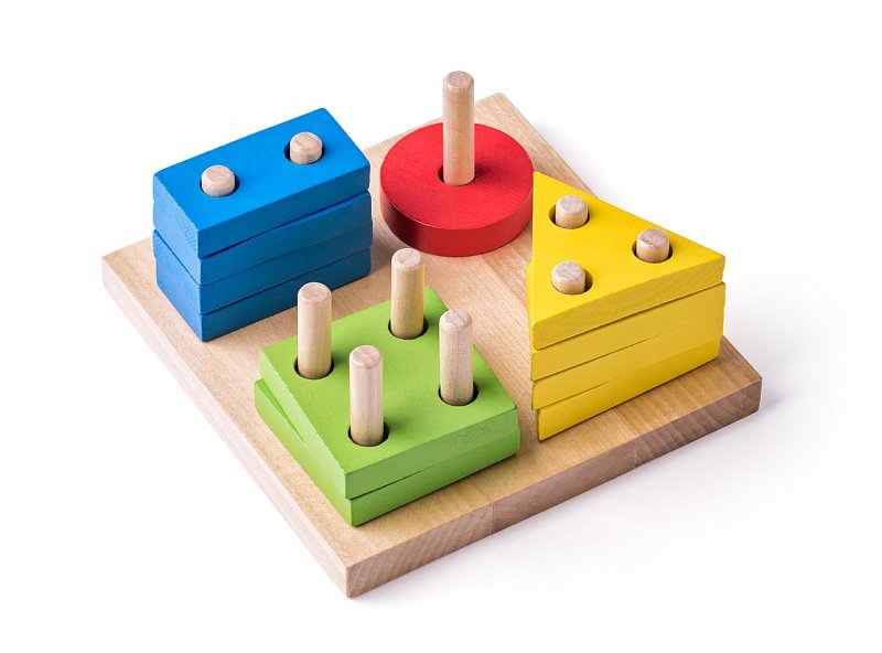 Osnovna je igračka u razvoju djece. Cilj je sortiranje 4 osnovna oblika u 4 boje na stalak s četiri različite kombinacije štapova. Sadrži 16 dijelova.