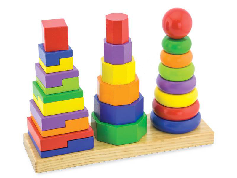 Odlična umetaljka s 3 različita oblika koje treba nanizati na stalak. Razlikuju se po broju dijelova i težini slaganja. Zadatak djeteta je izgraditi toranj prilagođavajući sve elemente uključene u vizualne upute. Pomaže u oblikovanju percepcije i logičkog razmišljanja.