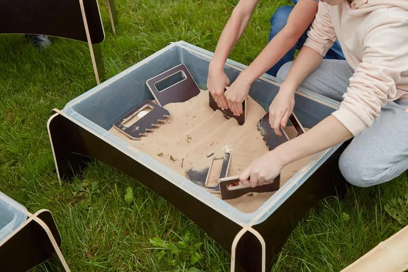 Ovi vanjski drveni češljevi za izradu oznaka za suhi ili mokri pijesak potiču razvoj fine motorike male djece.